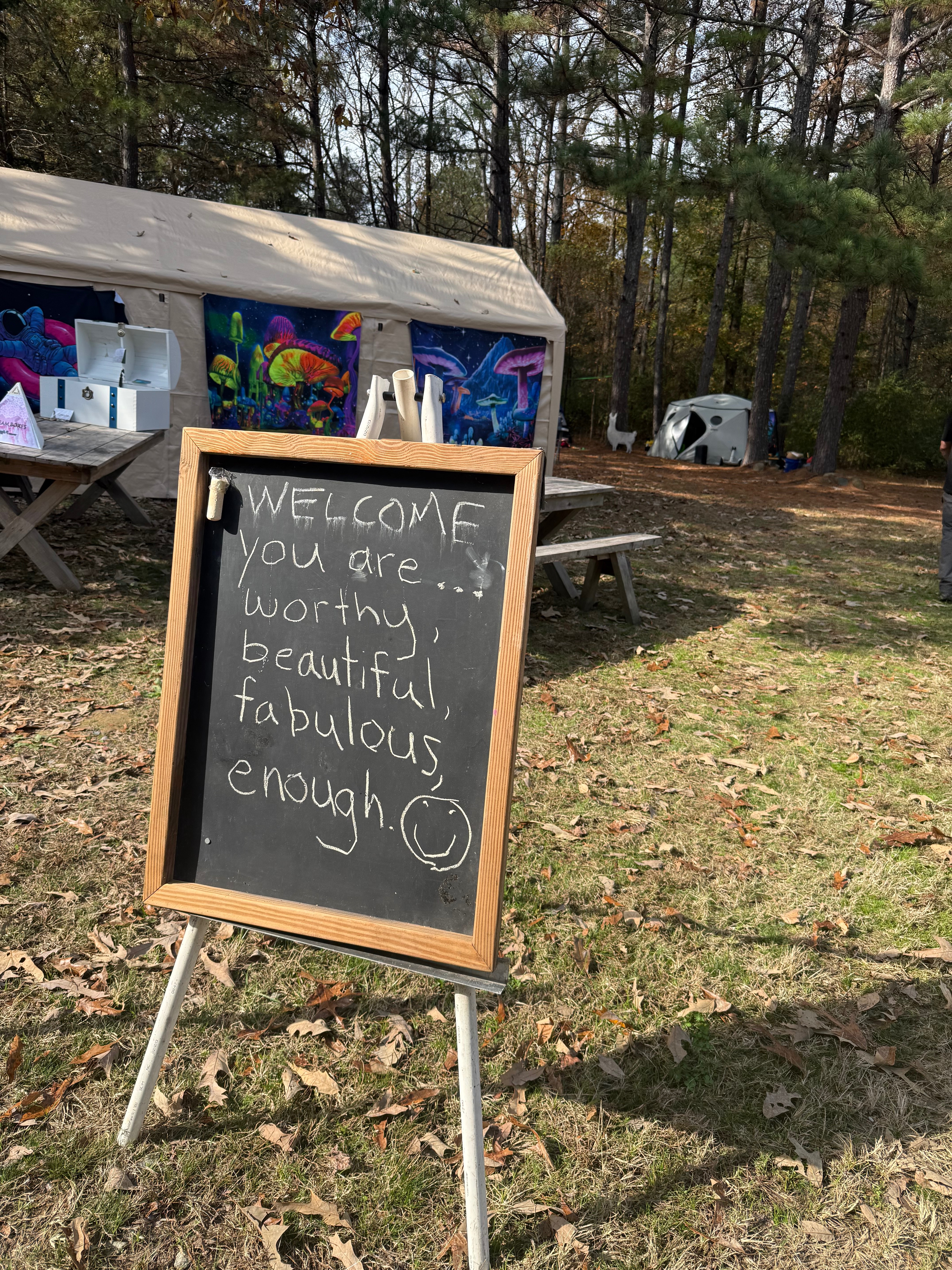 I solo camped (ya girl is not a camper) but set up for success (thanks to camp donations) and was welcomed with open arms by camps Frock Around and Find Out and Gay Space Communism who camped across the street. I fed myself and was fed by many others. I shared coffee and beers and pumpkin oat bars with strangers who quickly became not only friends but humans I will never forget.