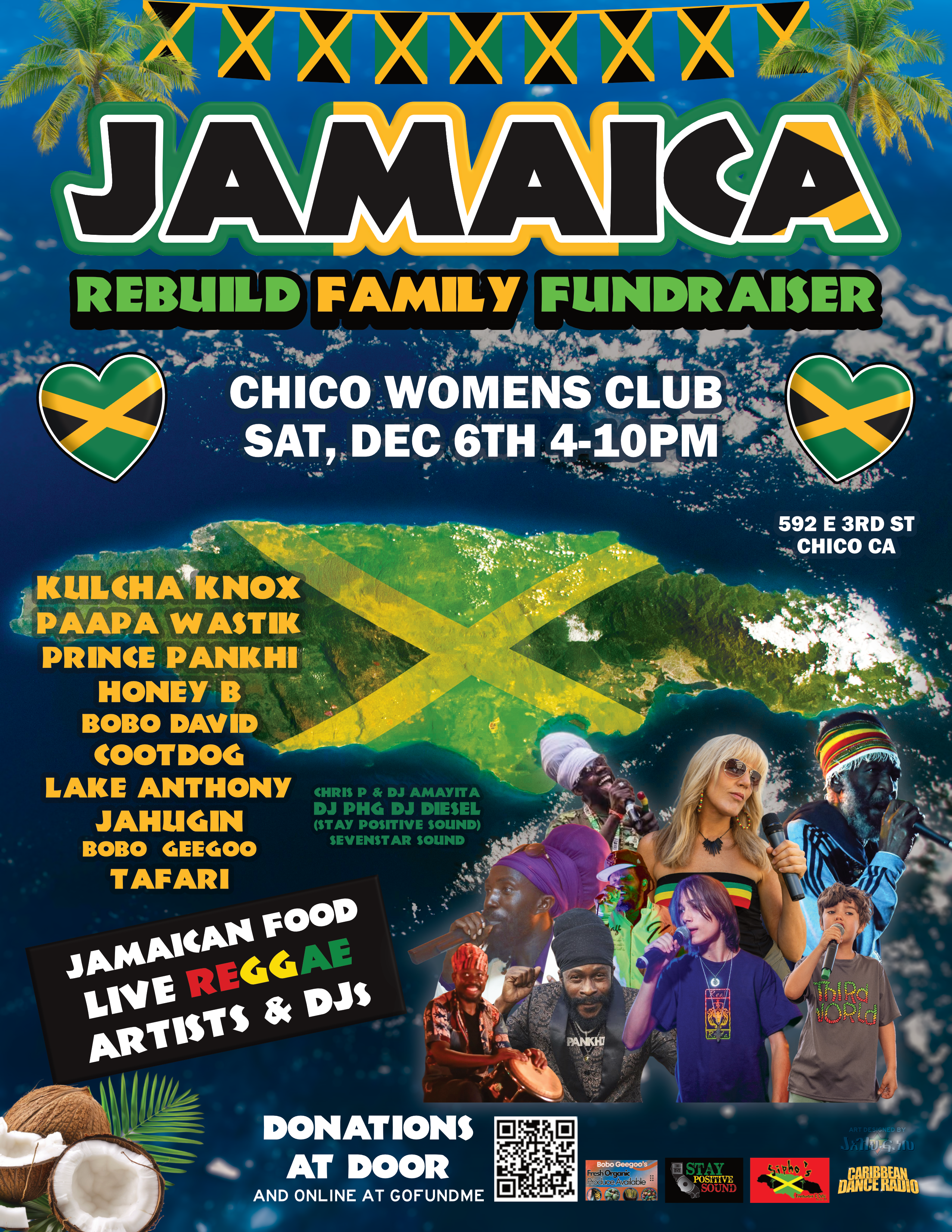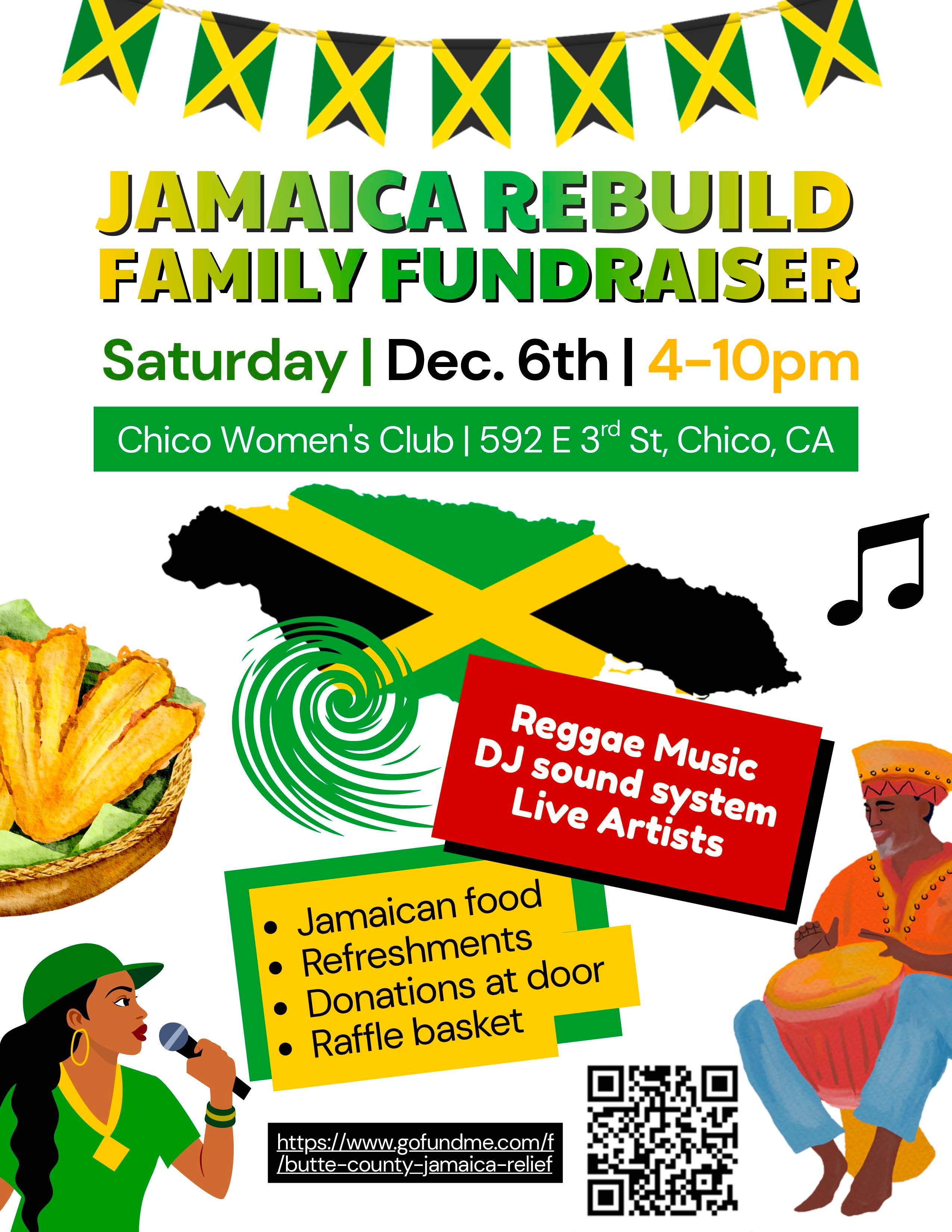 Also, we are hosting a community Benefit Gathering on Saturday, December 6th from 4:00 PM - 10:00 PM at the Chico Women's Center, located at 592 E 3rd St, Chico, CA, so we can come together, give what we can, and help our Jamaican families feel the love and strength of this community (flyer attached) & pre-sale tickets available at Event Brite HERE.