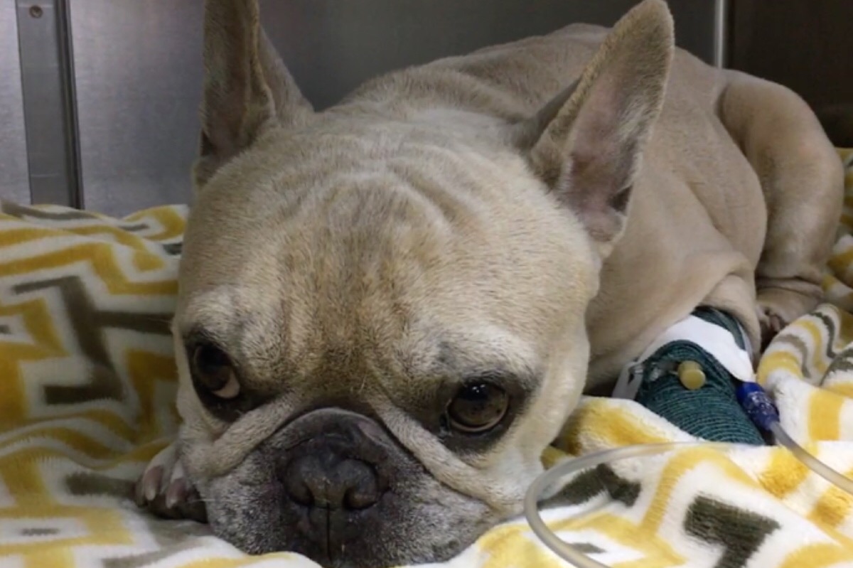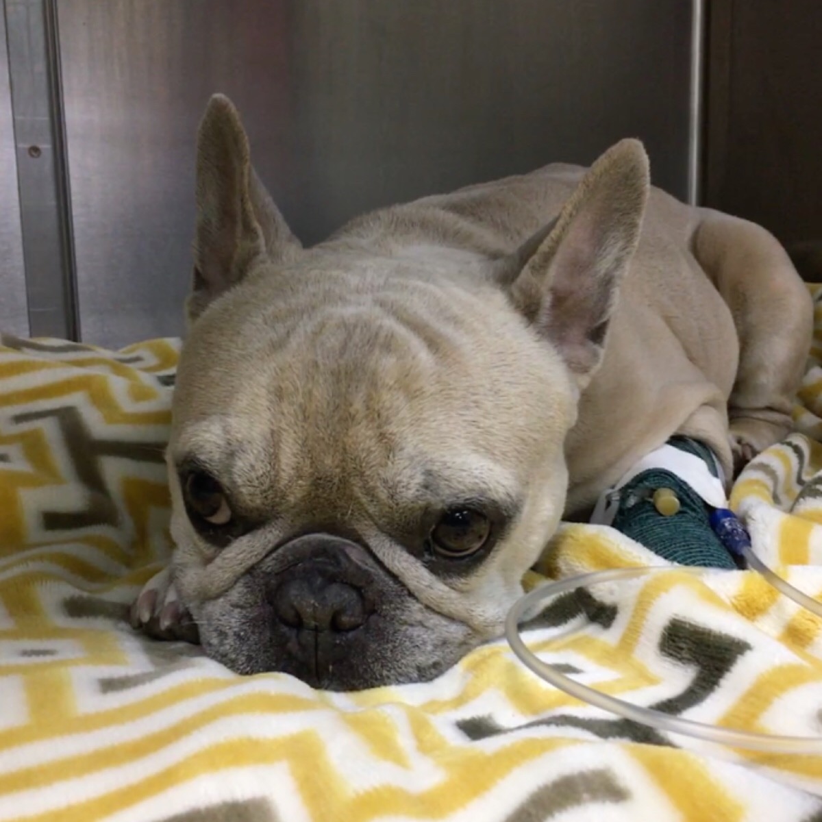 This is Butters and he desperately needs our help. Butters in currently in the ICU at the Las Vegas Veterinary Center fighting for his life. You see, earlier this week, he started acting funny and was spending a lot of time in the downward dog position, trying to hold his neck close to the ground. He’s also been holding his neck in a funny to the side like there is a crick in it and doesn’t want to be touched. He can’t stand for long periods of time because he is in too much pain.