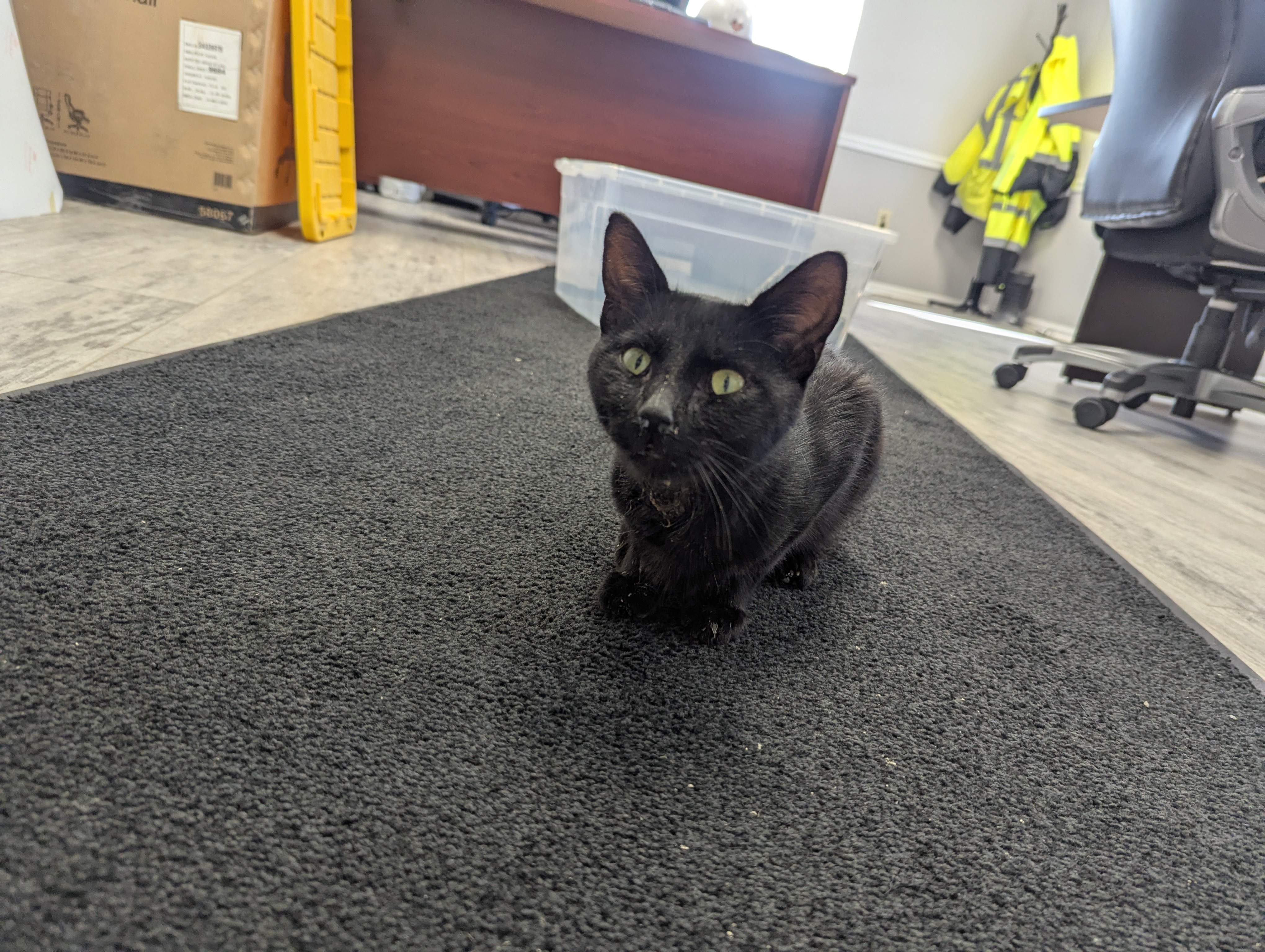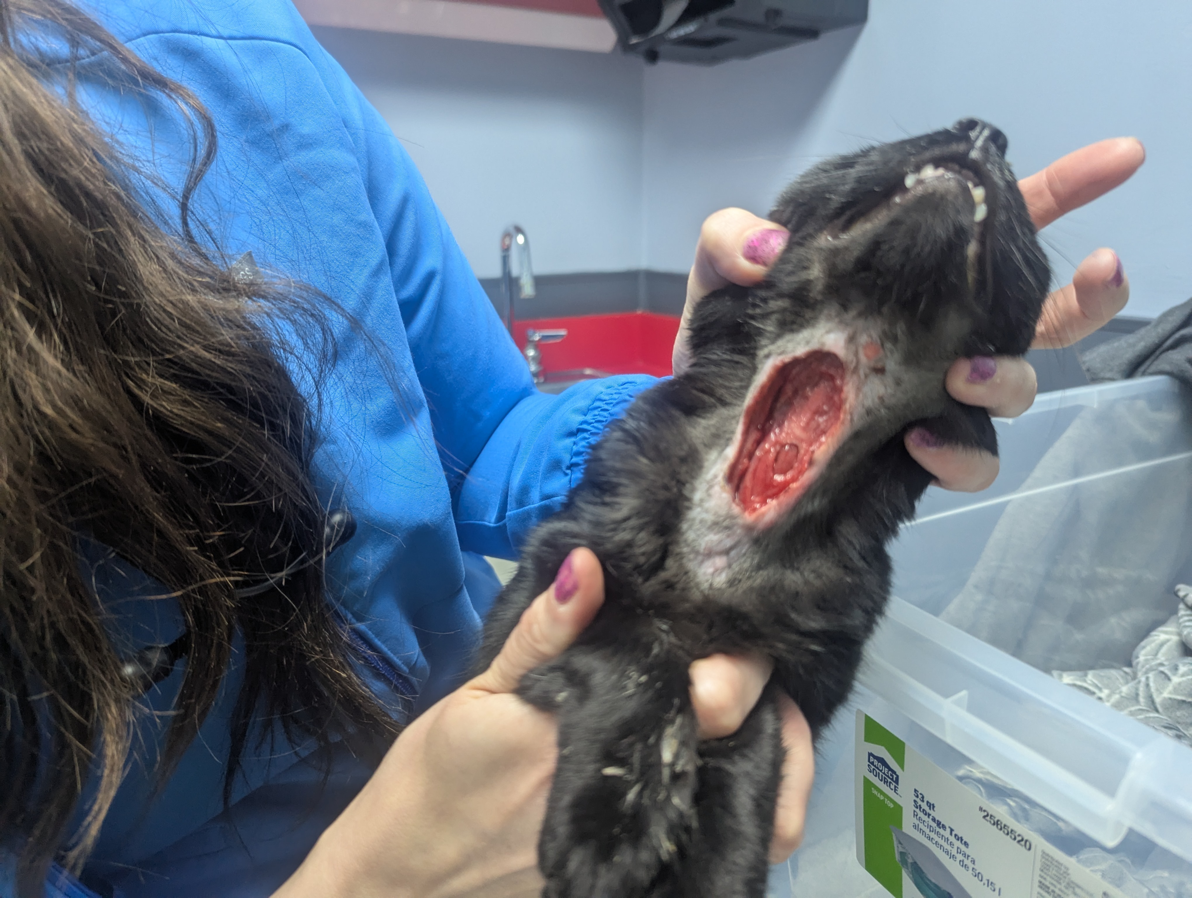 On 7/17/25, a cat was brought to my office from my work site's rail yard, where he lived outdoors. Despite having a scary neck wound, all Caboose wanted was lots of pets and love. This poor feller was making biscuits and trying to purr while in immense pain from his neck wound. After contacting several rescue groups to no avail, I decided waiting wasn't the answer and took him to the wonderful staff at Rivers Veterinary Urgent Care in Pittsburgh. Caboose wanted pets the whole car ride there and continued to show his beautiful character through all the pain.