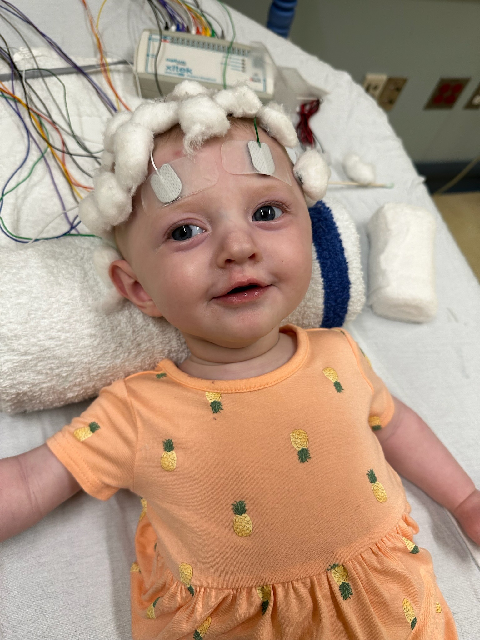 When we were finally able to bring Callie home, she began intensive therapies and made incredible progress. Her determination and spirit brought so much hope to our family. She especially lit up whenever her big brother, Rowan, was near. He was her little helper during therapy sessions, cheering her on, and she always smiled for him in a way she did for no one else. But toward the end of July, she developed infantile spasms — a rare and aggressive type of seizure that deeply affected her progress. Despite the challenges, the trials of different steroids, and more hospital stays, Callie continued to fight and continued to bring joy to everyone around her.
