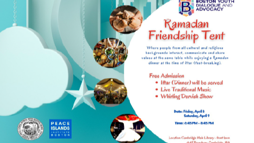 This year, for the first time ever, Boston Youth Dialogue and Advocacy (BYDA) and Peace Islands Institute Boston (PII Boston)are organizing a Ramadan Tent Gatherings in the heart of Boston with collaborations of City of Cambridge.