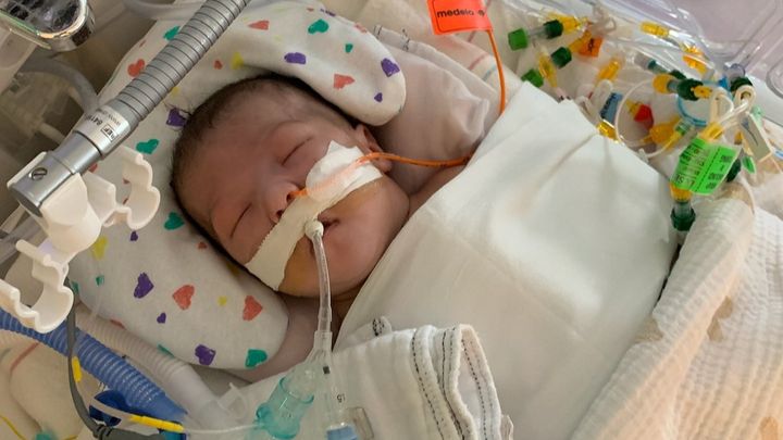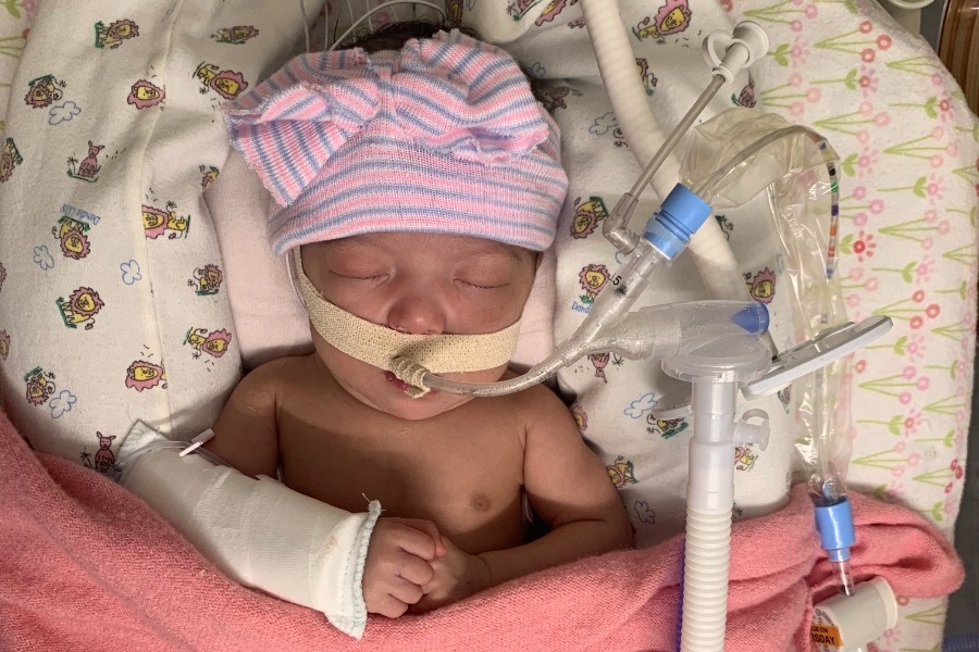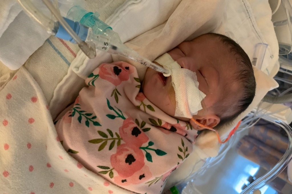 She has made it to 37 weeks and was delivered by an emergency c-section. Her heart rate dropped rapidly during labor, and was born not breathing. She was intubated right away and has continued being a fighter ever since.