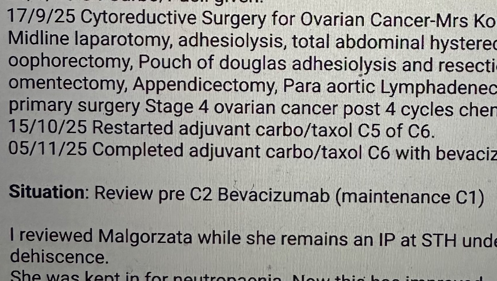 My name is Joanna, and I am seeking financial support for my close friend, Gosia, who is currently battling stage 4 ovarian cancer. She underwent a hysterectomy in November, but despite treatment, the cancer continues to progress.