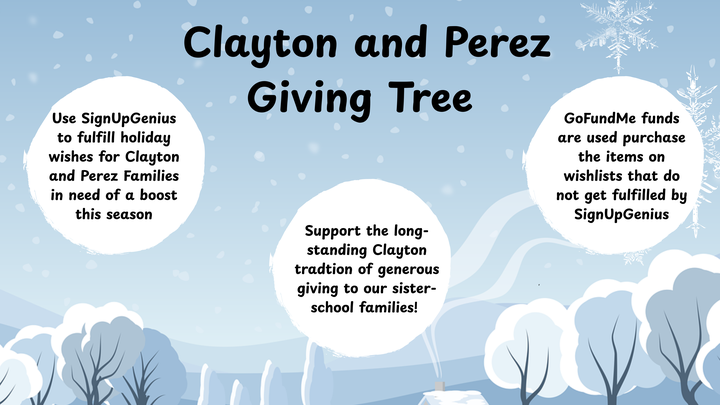 CAPA (Clayton and Perez Alliance) is creating this fund to provide holiday gifts to support our friends in the Perez and Clayton communities in need of a boost this holiday season. In addition to toys and clothing, there are basic household needs like food, medicine, gas to go to work, blankets/bedding and kitchen essentials. We will be collecting gifts from the families' wish lists (see below sign up genius links and monetary gifts through this gofundme to help augment those donations.