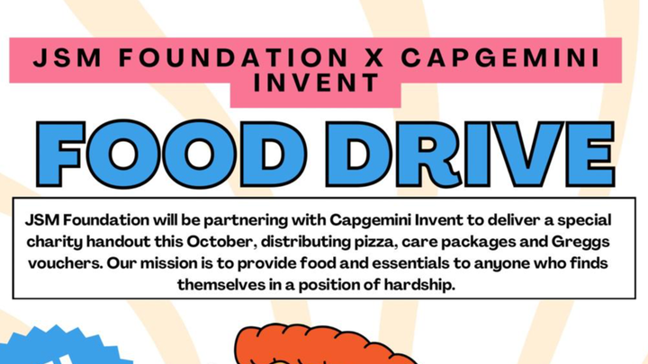 JSM Foundation will be partnering with Capgemini Invent to deliver a special charity handout this October. Our mission is to provide food and essentials to anyone who finds themselves in a position of hardship, and this is being supported by Capgemini’s Impact Together Month.