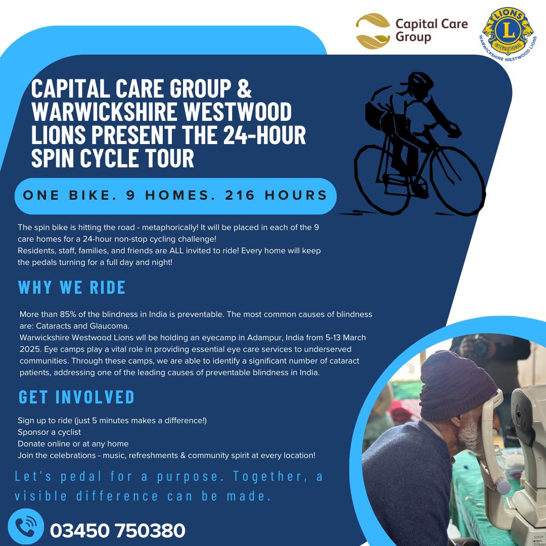 Across all 9 Capital Care Group homes, a 24-hour non-stop cycling event will take place!