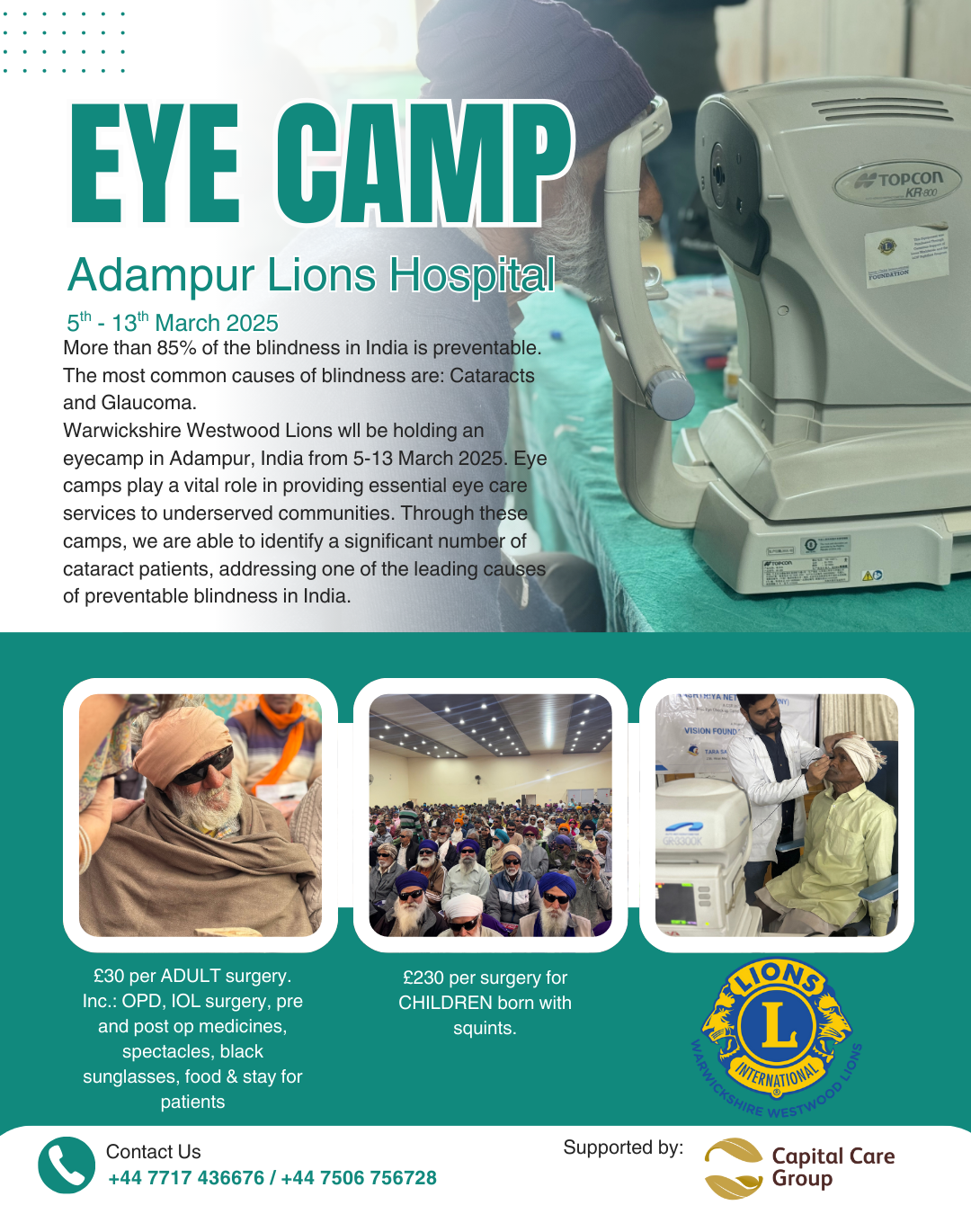 From everyone at Capital Care Group, Warwickshire Westwood Lions, and Lions Eye Hospital, Adampur – thank you for helping give the gift of sight.