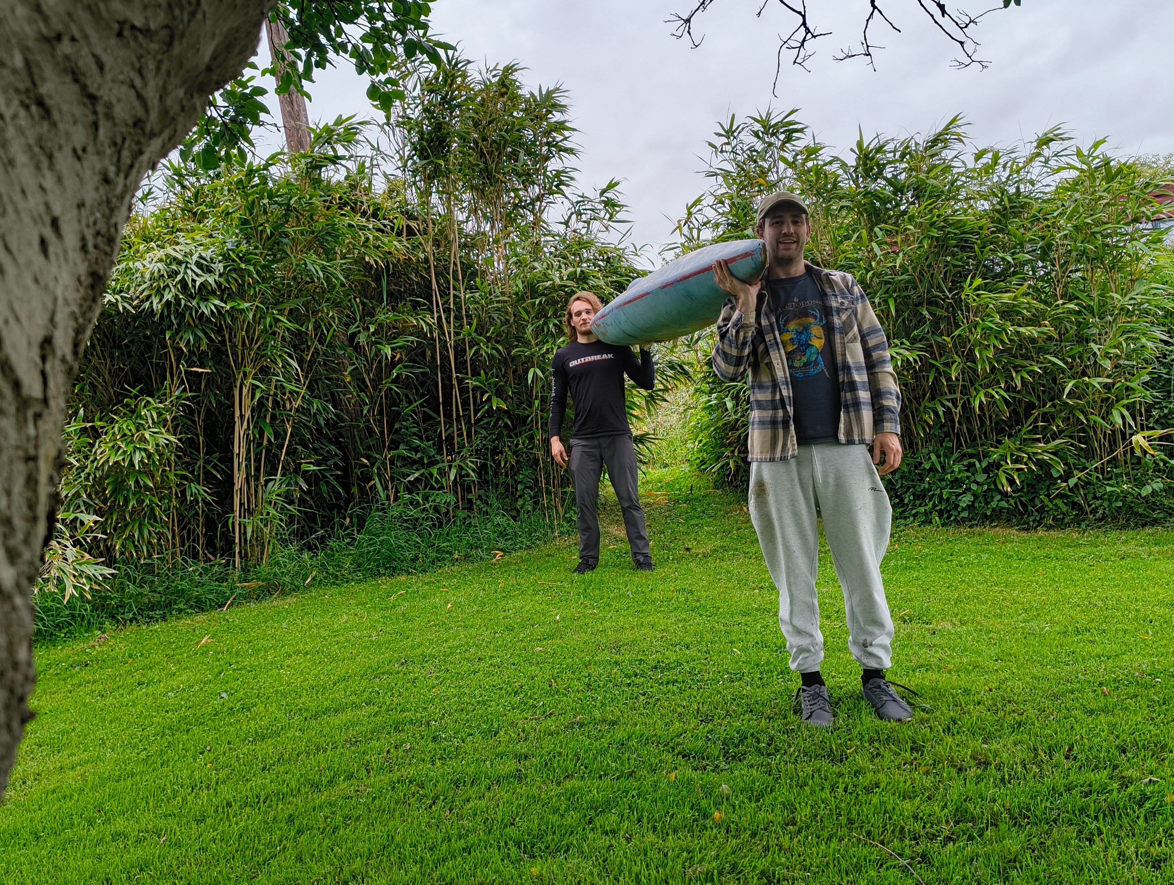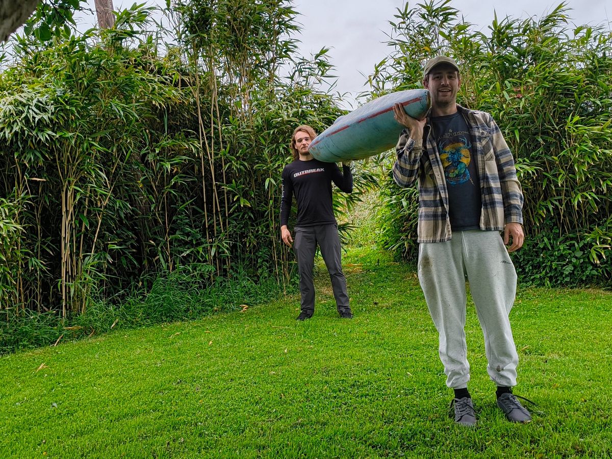We’re taking on the Cardiff Three Peaks Challenge , carrying a two-person kayak with us the whole way for some reason.