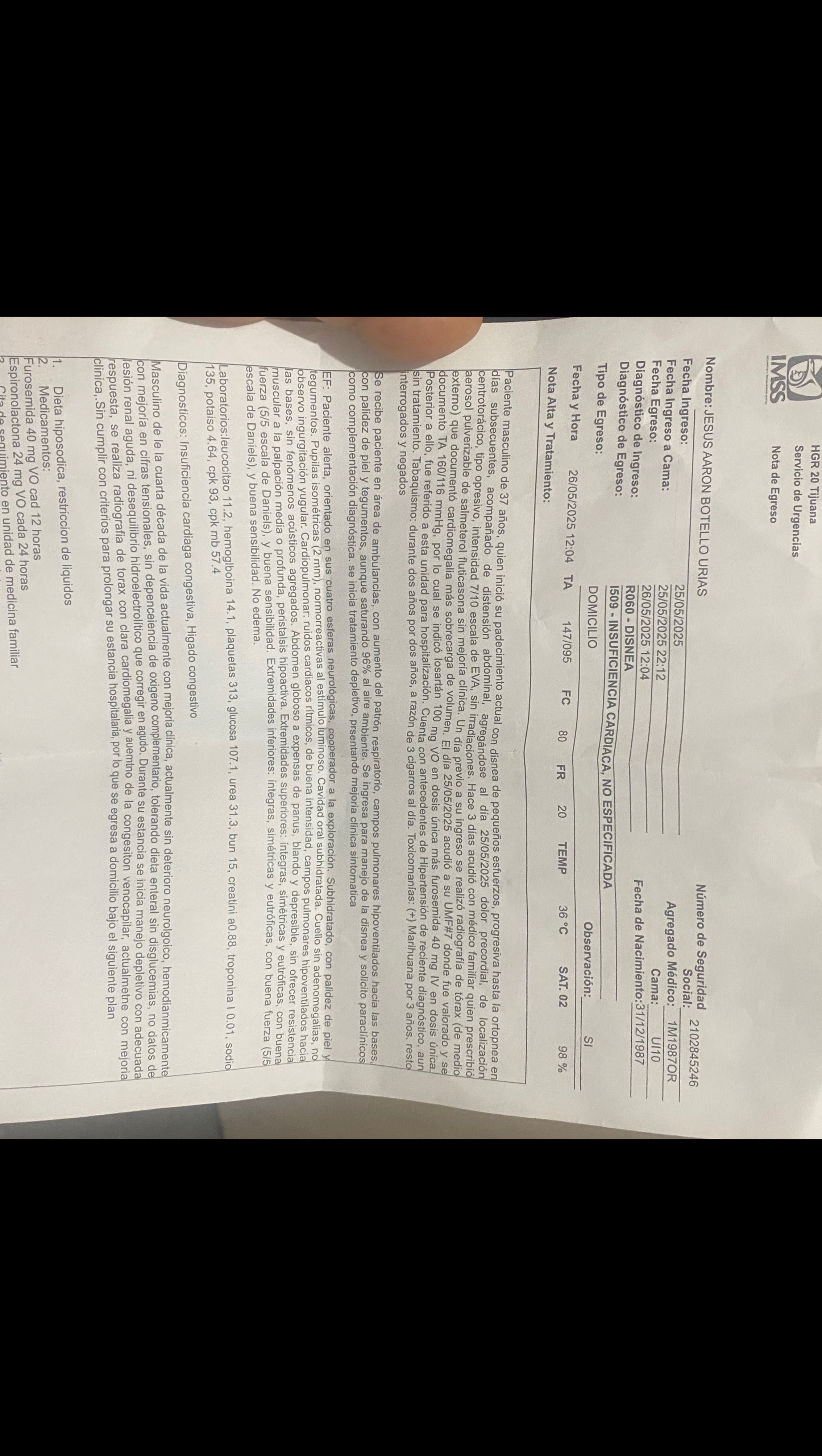 Hola me llamo Jesus aaron botello Urías tengo 37 años hace un mes dime detectaron cardiomegalia etapa 4, lo que no me permite trabajar a lo que me dedicaba (cocina).