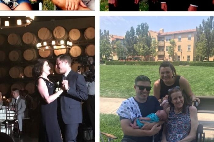 Pictured above shows my mom back in the early 2000's with my dad (top left), family photo from 2003 (top right), my wedding day in 2017 (bottom left), and the birth of her grandson in 2020 (bottom right).