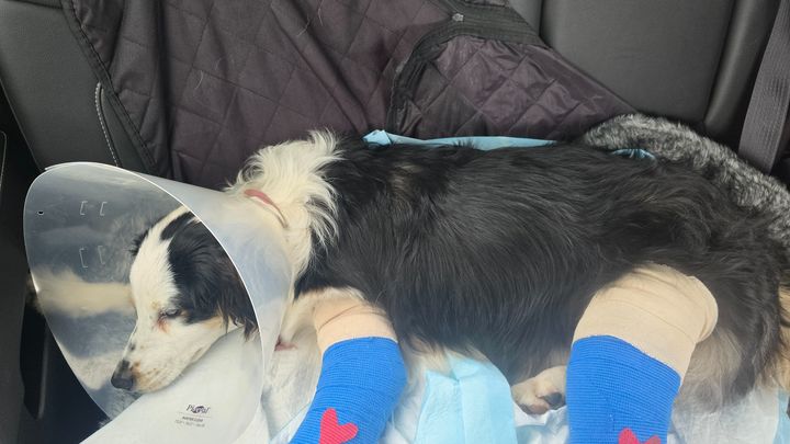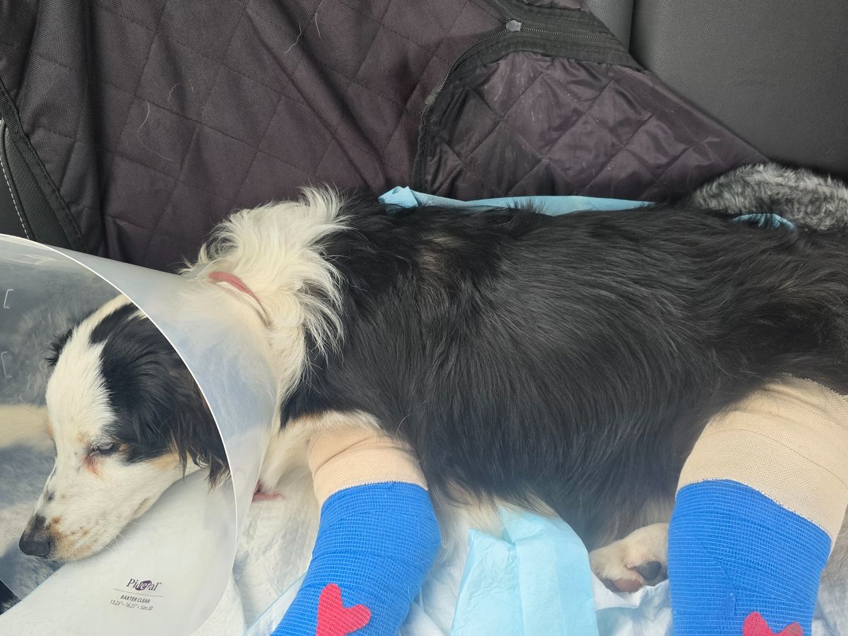 My moms dog penny got hit by a car last night, it was a hit and run. She now has 2 broken legs anything helps the bill is outrageous