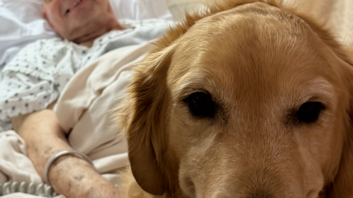 Will has been in a rehabilitation center in Pacifica. It's been longer than we thought, which is rough on Will. It's hard being blind and in the hospital without your guide dog, but he is in a shared room and unable to walk Rango. So, while Rango is visiting, there has to be an attendant or friend with him.