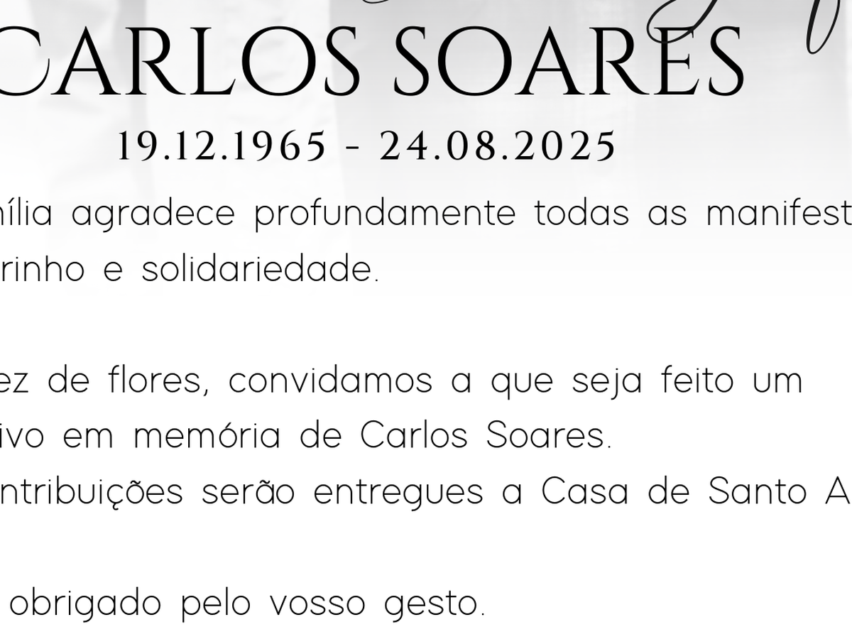 Em vez de flores, convidamos a que seja feito um donativo em memória de Carlos Soares.
