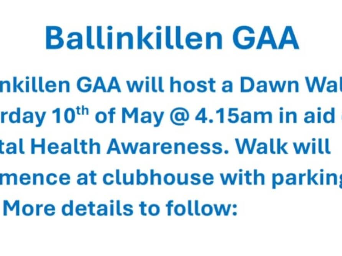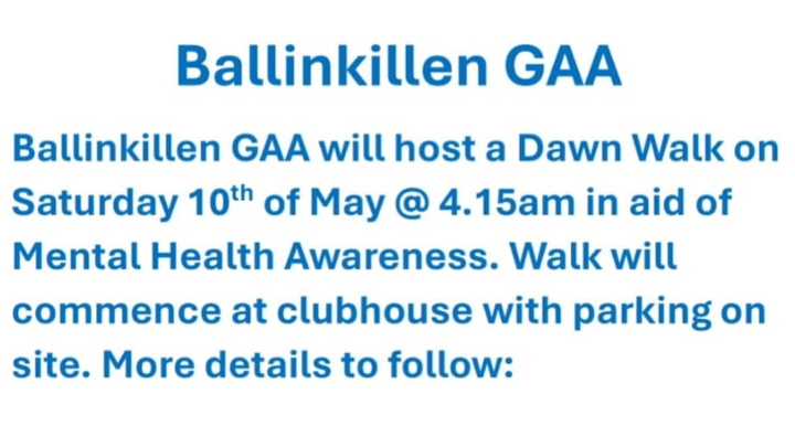 Hi, on May 10th our club is hosting a dawn walk on the club grounds to raise awareness/funds for the Carlow Mental Health association. We will start the walk at 4 15am that morning - more details on our socials/groups.