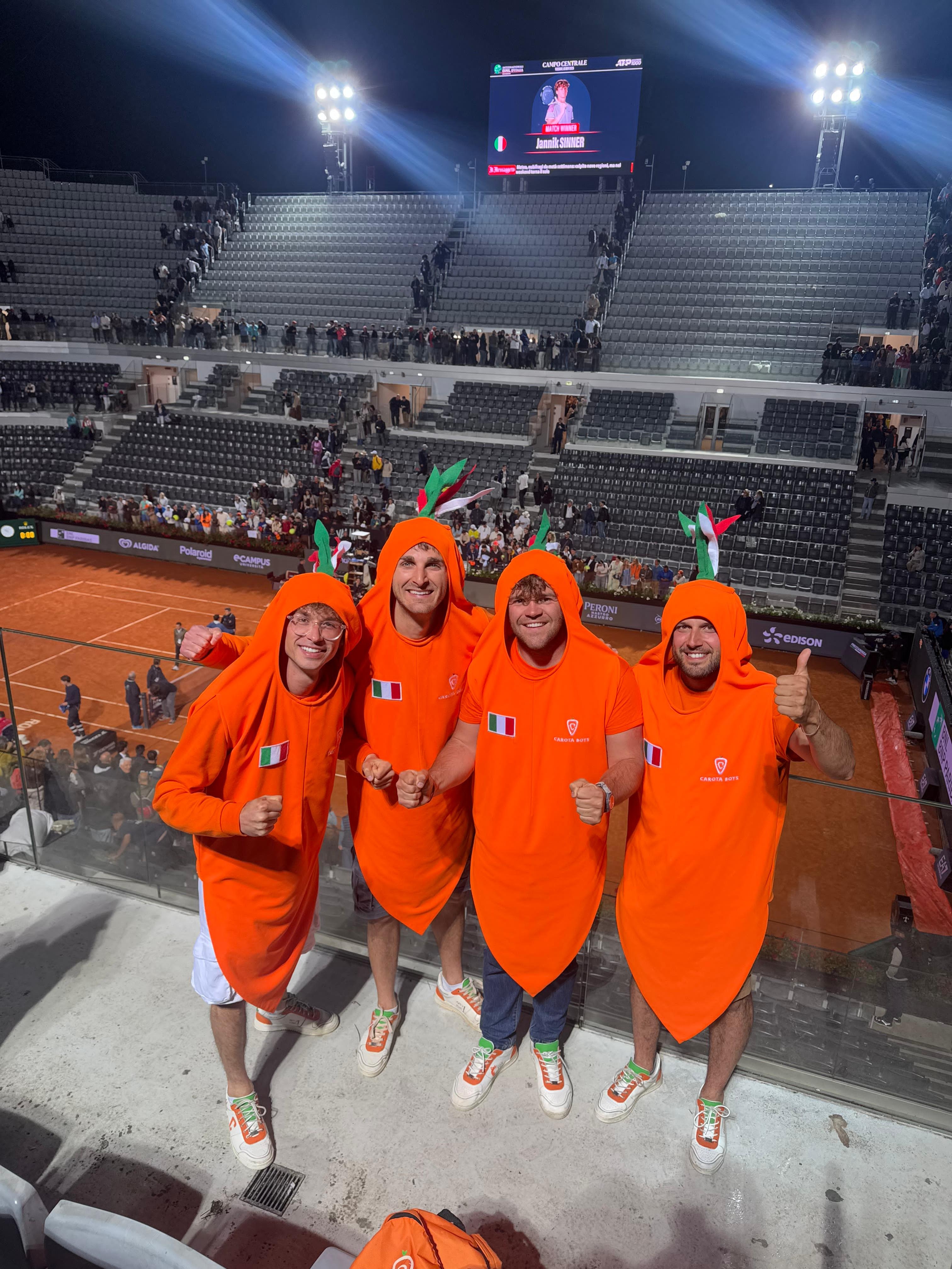 Siamo i Carota Boys un gruppo di amici appassionati di tennis che, partendo dalla passione per questo sport e per Jannik Sinner, hanno costruito una community autentica, ironica e solidale.