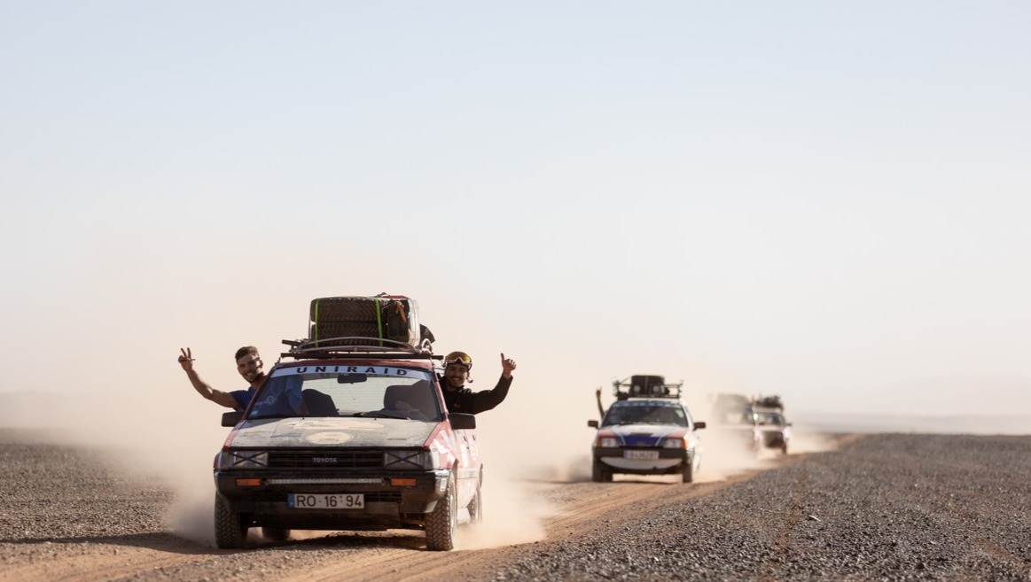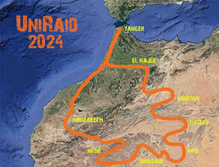UNIRAID es una carrera solidaria en coche, enfocada a estudiantes menores de 28 años por un itinerario a través del desierto de Marruecos que dura 9 días, con la intención de repartir al menos 40 kg de material solidario por equipo a las escuelas de alrededor.