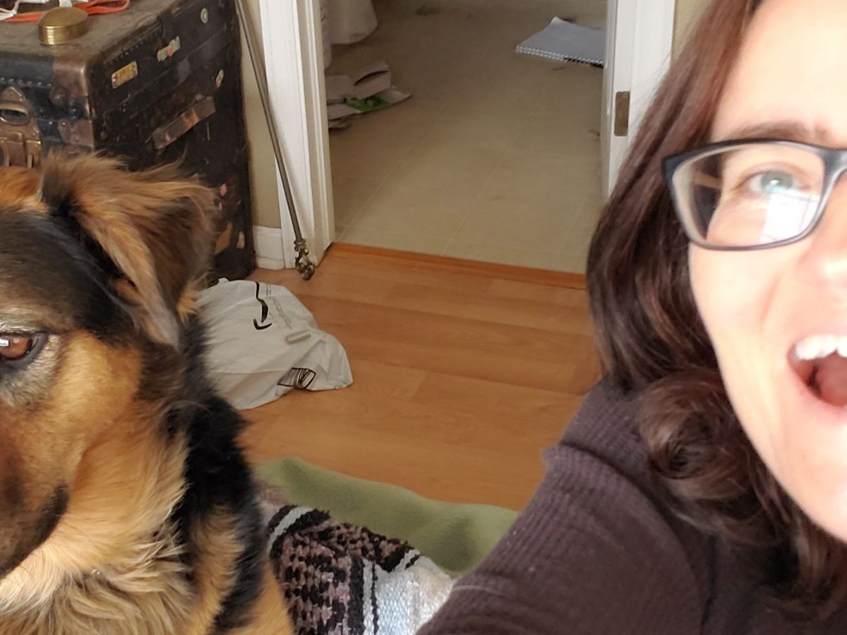 I wanted to include all these photos to show that I am still managing and Charlie and I are still happy and mostly healthy. The top photo was taken just yesterday, Christmas!, and two were taken this year: on my birthday at my book release at the Mercury Cafe, and Charlie looking fancy this fall. The other photo shows me a year after my breast surgery and cancer free just after my yearly mammogram.