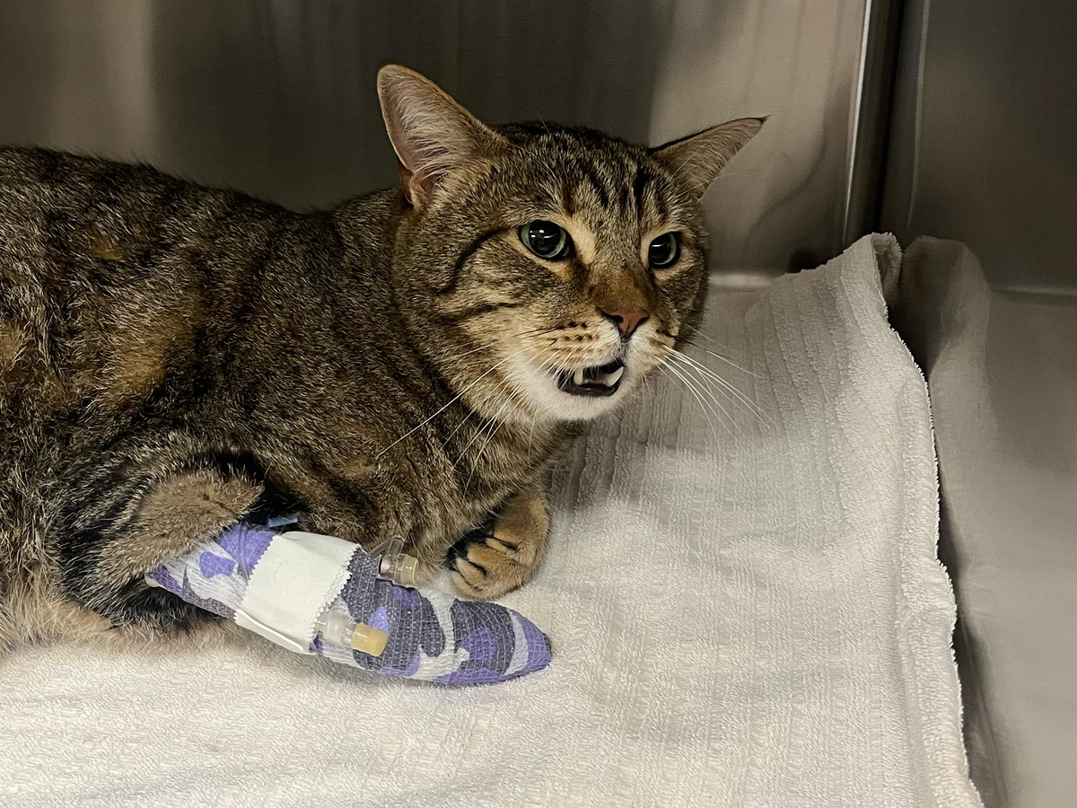 Cashew was rushed to the emergency vet and is in critical condition. He’s suffering from a painful blockage that’s life-threatening, if things don’t improve by tomorrow, he may need invasive surgery to survive.