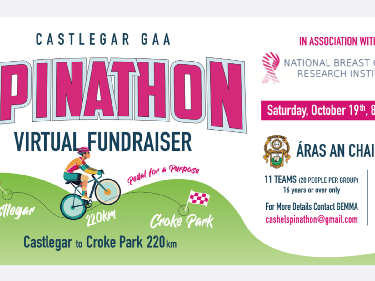 On Saturday October 19th Castlegar GAA are hosting a Spinathon in Castlegar GAA indoor arena. The plan is for 11 teams of 20 people per group will spin (virtually) from Castlegar to Croke Park over a period from 8am to 7pm, we will have 220 participants signed up who will be sharing their personalised fundraising page in a bid to raise funds for both the future development of our club at all ages and grades for both Camogie and Hurling and our charity partner NBCRI. As October is Breast Cancer Awareness month, we chose them as our charity partner to use the event as an information day on breast cancer research and awareness and to raise awareness for breast cancer in the community and among our members.