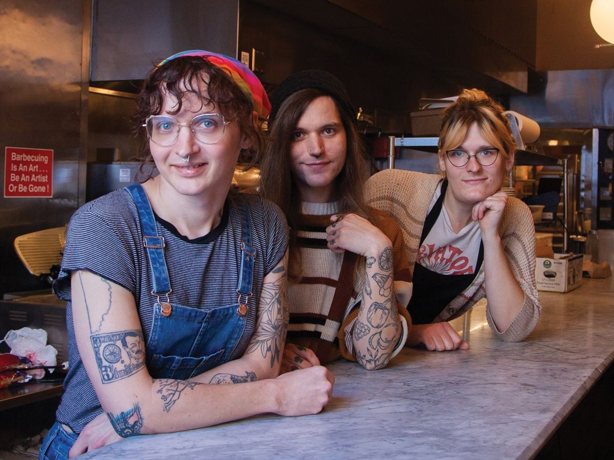 Hey there, we're Kim Conyers, Olive Cooke, and Sylvia Metta, and we are the founders of Kansas City's first completely worker-owned food business, Cauldron Collective. We are currently three trans women who have served plant-based comfort food around KC through pop-ups at various places for the past year and are just recently settling in with pop-ups at The Ship once a week. You can read all about us in Feast, Startland News (twice), Flatland, and The Pitch.