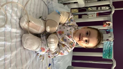 The diagnosis was Parainfluenza that led to bacterial pneumonia. With his little body unable to fight the infection, later that week Dante went into Septic shock which led to necrosis of his extremities. He was put into a medically induced coma for almost a month. On August 11th, because of the necrosis, they had to amputate both of Dante's