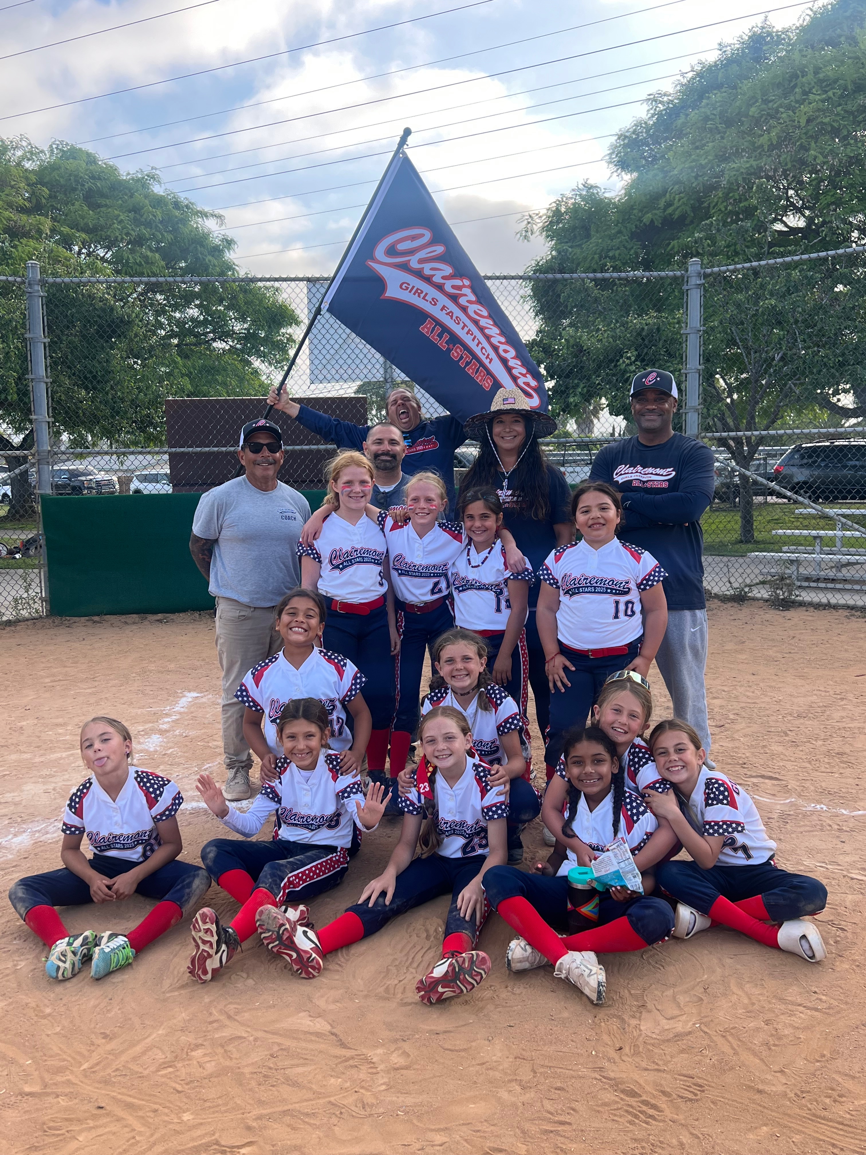 Hi, I’m Jenny, team mom for Clairemont Girls Fastpitch 8U Gold All Stars team. These girls have been working extremely hard this season. They have been practicing almost every day since school got out and have had tournaments every single weekend. They have played against some fierce competition in Southern California! Our Clairemont league is small compared to most other leagues in San Diego but these underdogs played their hearts out at the district tournament and qualified to advance to the USA softball State Championship Tournament in Irvine 4th of July weekend! To say we are proud is an understatement. The coaches, players, and parents have dedicated so much time, blood, sweat, and tears to get here and we are beyond excited!