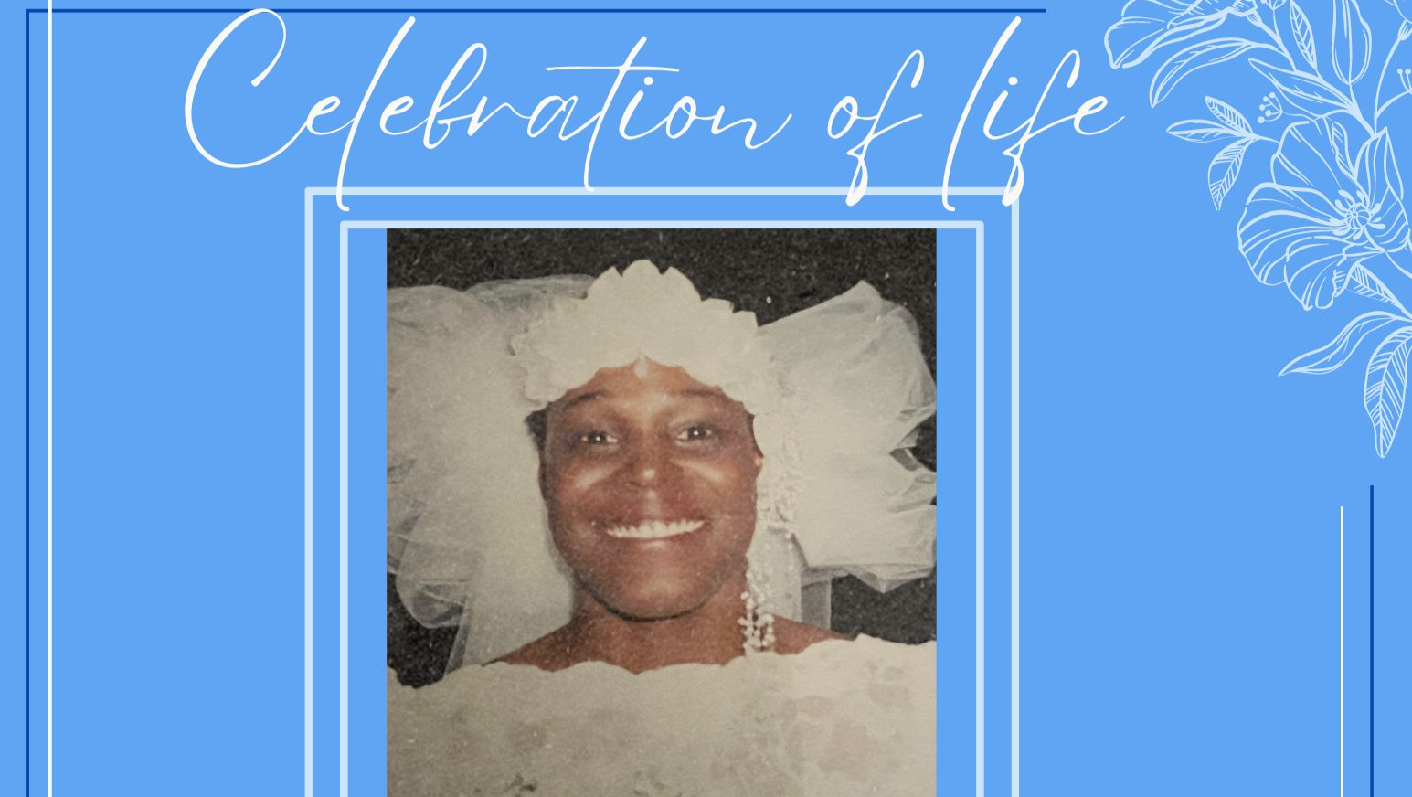 Hello I am collecting donations for my mother's celebration of life all of your donations will help me. With the cost of her cremation, urn for her childen, food, decorations, music and drinks for us to celebrate her life. Happening on September 30, 2023 we ask that eveyone pleases come in color as the family will be dressed in blue. The visuals starts at 10 am and Serevice starts a 11 am at Elmwood United Presbyterian Church 35 Elmwood Avenue East Ornage, NJ 07018.