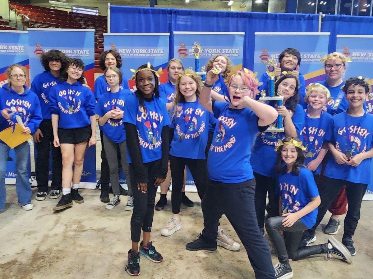 The Goshen Odyssey of the Mind Booster Club is pleased to share that two of our Goshen teams have made it to the World Finals! Thanks to their hard work and tremendous creativity, they have qualified to represent New York State on the World Finals stage at Michigan State University, May 24th - 27th.