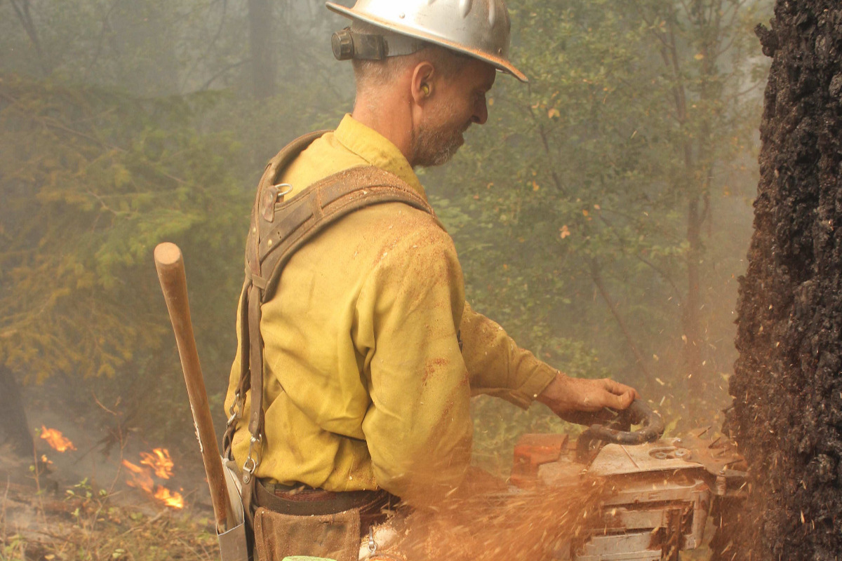 Chad lives in a rural part of Northern California in the Six Rivers National Forest and is contracted with the Forest Service as a Timber Faller for hazard tree removal. Highly skilled at what he does, he was working on the August Complex fire cutting a tree on the fire line that had been compromised by the fire. The damaged wood in the tree gave way unexpectedly and came down toward Chad. In spite of a brilliant scramble, his foot was pinned under the falling tree. The Mendocino Hot Shots were on hand to render aid. Chad’s leg was broken just above the ankle, and several bones in his foot were also broken. He was flown to Mercy Redding for surgery.
