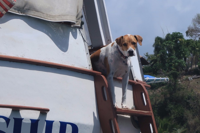In preparation for the Category 5 Hurricane Irma, Jimmy moved Friendship to Culebra, PR to a protective hurricane hole where he remained onboard to ride the storm out. Jimmy realized mid storm that despite his best efforts, he would have to leave the boat and seek safety if he would survive. In his wetsuit, he gathered Brady and his dry box and jumped overboard into waves 10 feet high and swam towards the distant land. On the way, he lost Brady and his box! Miraculously, he made it to land and was rescued by an officer who saw him staggering in the 150 plus miles winds seeking shelter. Jimmy begged that officer to look for his beloved Brady. Amazingly, Brady found his way to his dad and they rode the storm out together. The next day, he found his box deep in the mangroves. When he looked out, he could not have been happier to see Friendship still afloat. Bombashay, his dive boat was gone. He returned to his boat but had to stay put. Ports were closed due to the devastation from Irma on St. Thomas. He remained patiently in Culebra, counting his many blessings. Then he got word of Hurricane Maria heading towards the islands. Based on limited reports available, he decided it was best to stay in Culebra.