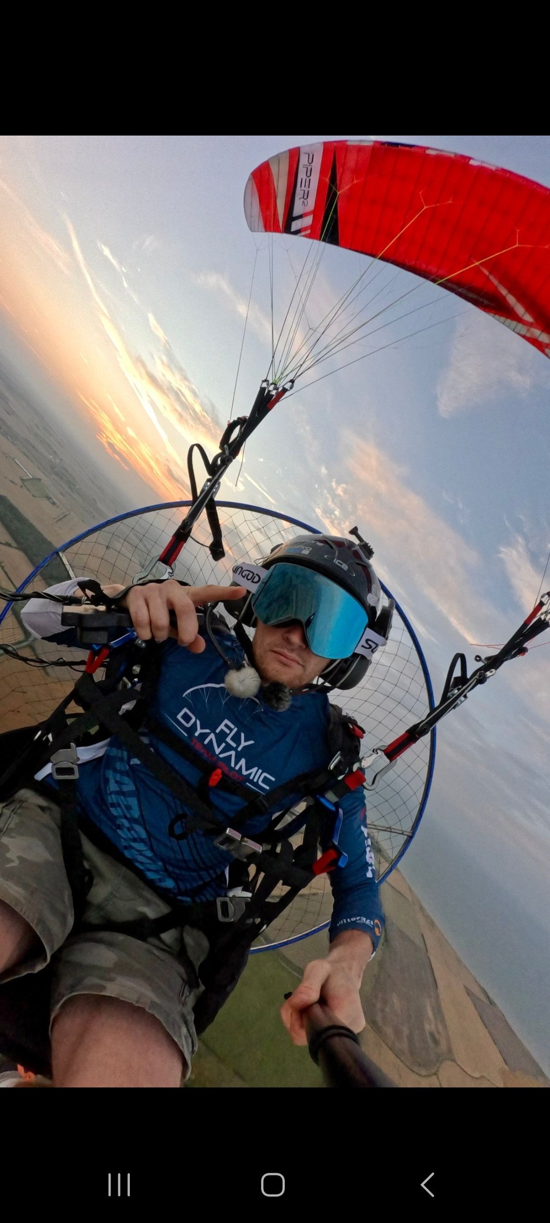 40+ paramotor pilots in +500m wide delta formation, led by our flying car,