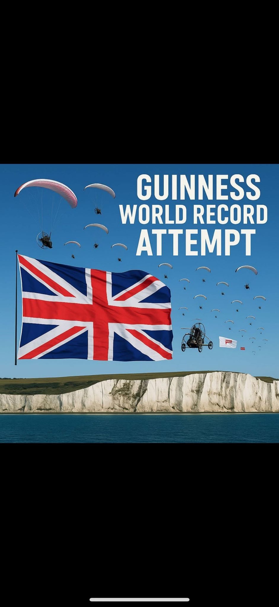 A dedicated group of UK paramotor pilots will fly in mass formation from Calais to Dover, setting a new Guinness World Record for the largest formation of paramotors to cross the Channel.