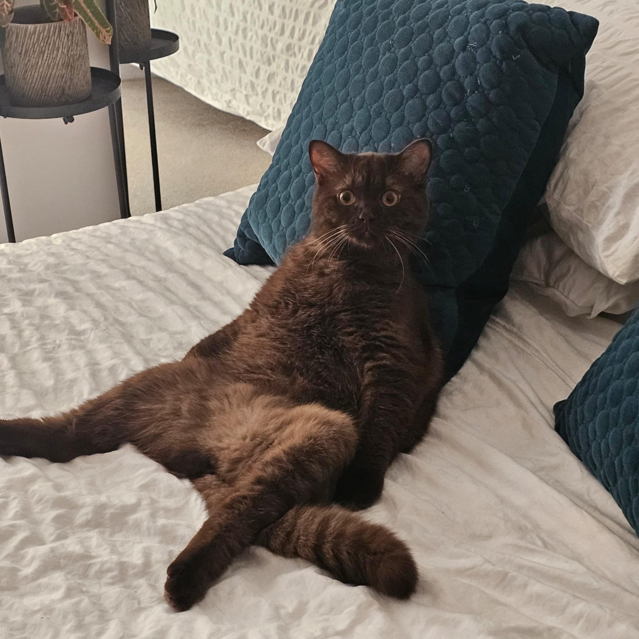 I saw first hand the amazing work her, her amazing team of fosters and volunteers do. I started fostering, in one year I helped 14 cats find their forever home. To be a part of that process was so special. So much so, that in March 2025 I fell in love with the cheekiest of boys - a chocolate British Shorthair - Teaser. He'd been with me only a few days when I knew he was the one!