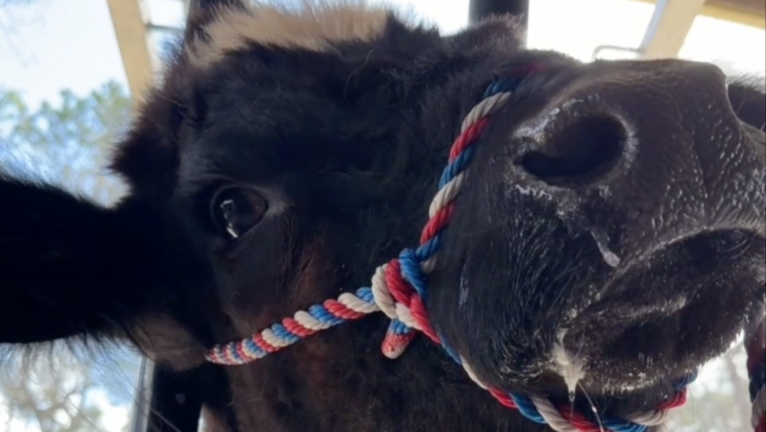 And he’s had a life better than most cows. Raised by hand, trained to be gentle, brushed and groomed for the county fair — a far cry from factory farming.