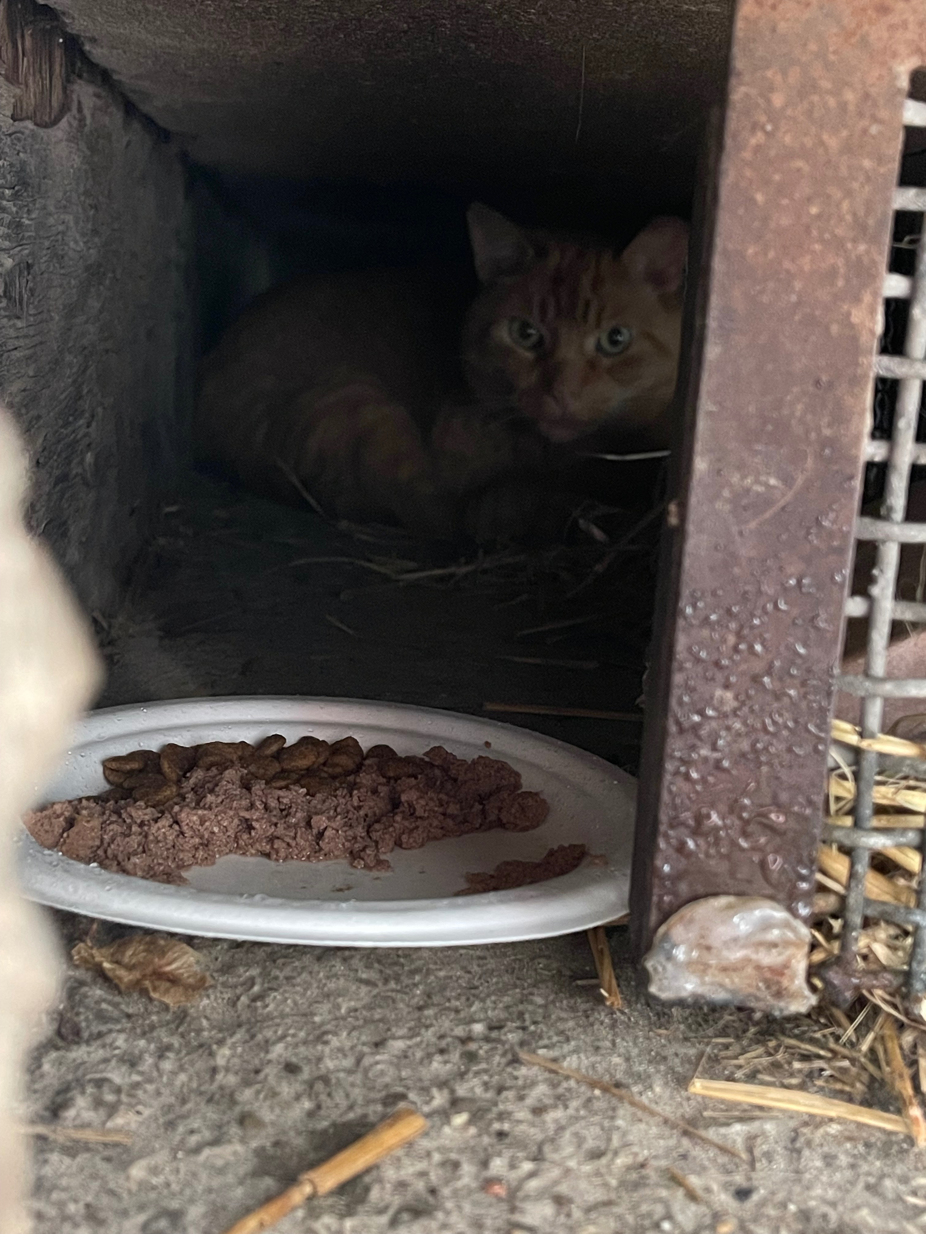 Upon witnessing Cheddar’s trust and bond with just one of his many feeders, who Cheddar allows touching even when he’s not eating, it’s entirely possible that with some time to decompress he may do well in a home with one of his former feeders or someone with patience and experience with semi-feral cats who may provide him with an indoor environment where he may thrive.