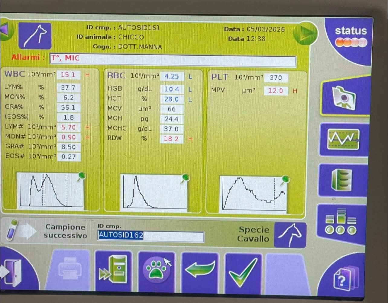 Al momento sta facendo terapia di vitamine perché è anemico