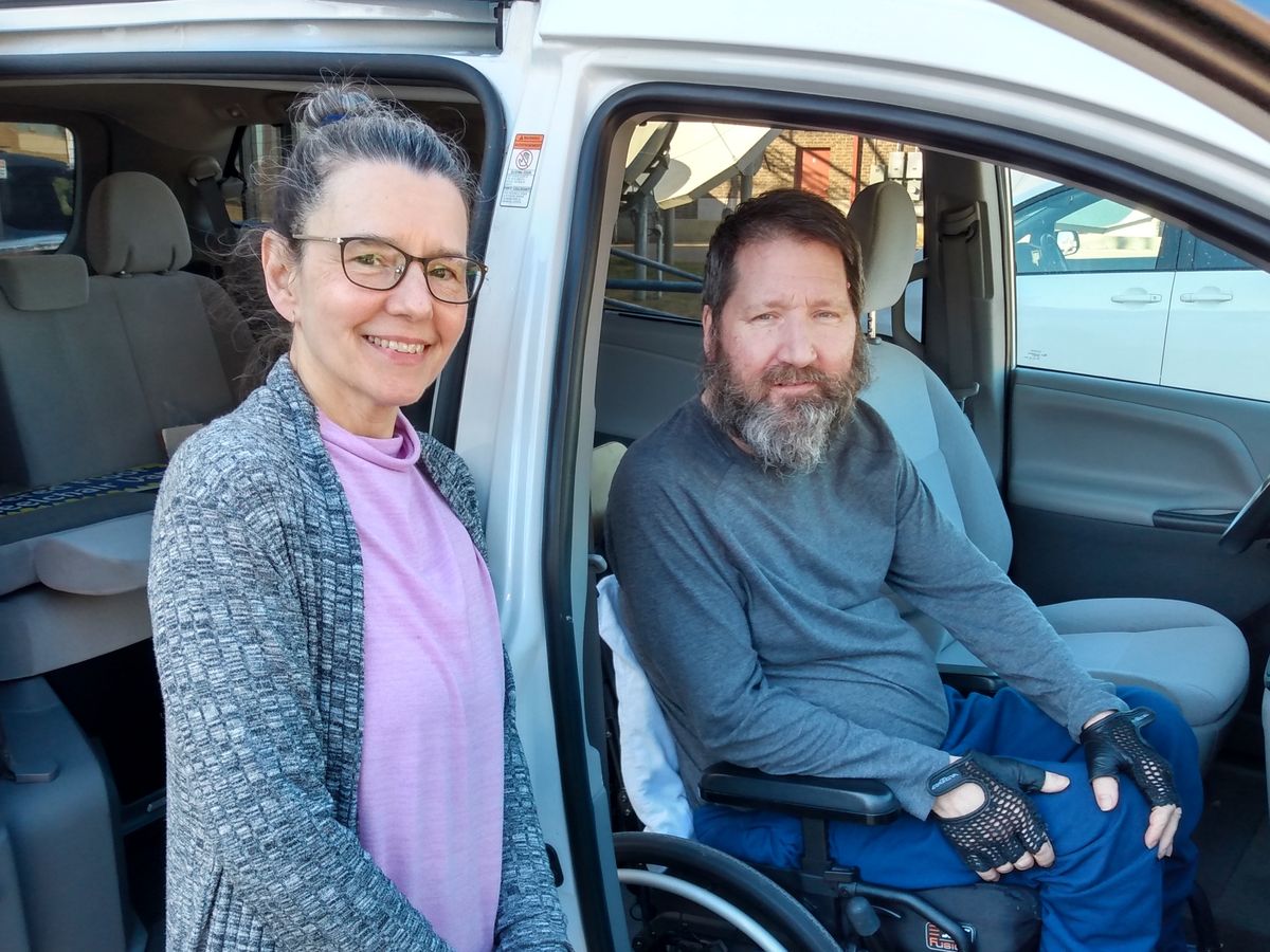 Chip is no longer able to walk. He is confined to a wheelchair or a medical bed. For him to go to a doctor’s appointment, or to go anywhere, Chip has to transfer to a seat in their 23-year-old compact car using a wooden board. This is very challenging with his pain level and muscle weakness. His wife, Kathy, then disassembles the wheelchair and puts it in the back of their car, only to remove it and reassemble it at their destination. Despite her willing spirit, Kathy has a weak back and osteoporosis and this process threatens to cause her injury.