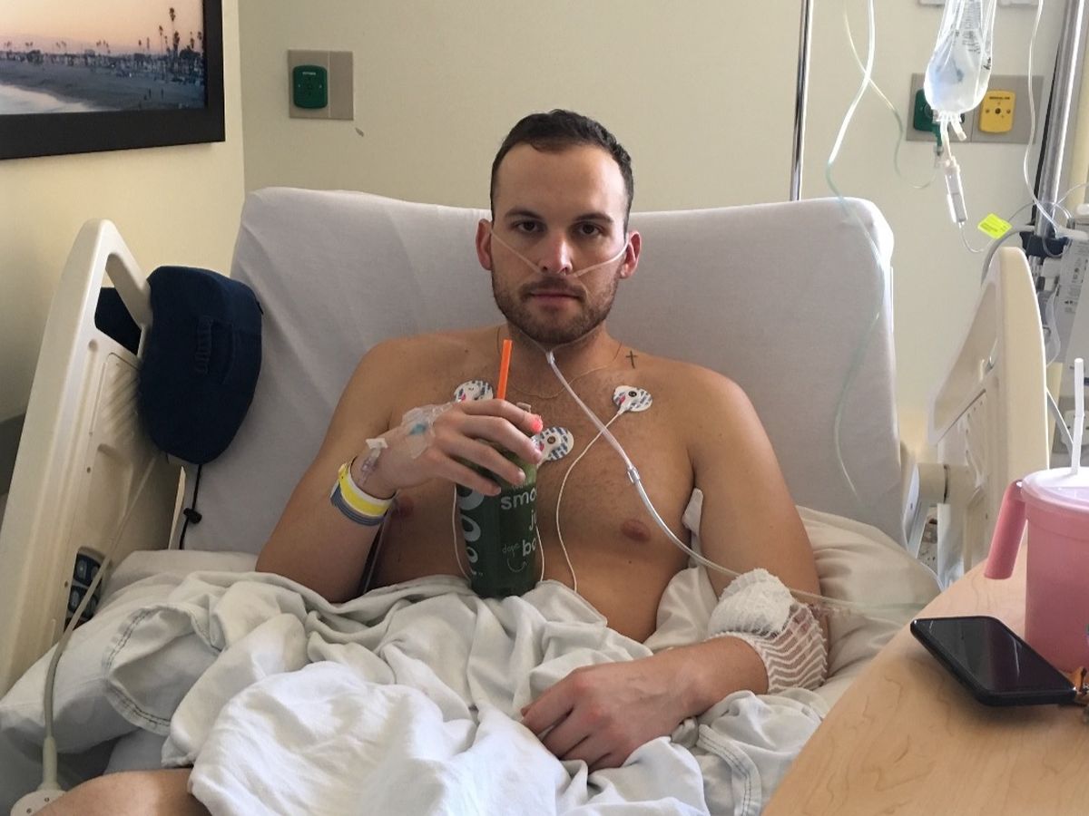 By the time he arrived in California, Chris was weak and visibly sick. As the week continued, instead of feeling stronger, he was getting weaker. He complained about difficulty breathing, an inability to sleep due to chest pressure and was unable to eat because his throat hurt so badly. After identifying the illness as strep, he went to the urgent care for help, but they sent him home with an antibiotic referral. By December 29th, six days after his initial illness, he was at the point where he could no longer bare the discomfort. His parent’s rushed Chris back to the urgent care for another examination, and again, the doctor stated that Chris as a young, 26 year old athlete, would be just fine and probably pulled a muscle or tweaked his back causing discomfort breathing. It took a praying mom to demand to the doctor for his lungs to be checked and what they found would be shocking...Chris’ chest was filled with fluid. The doctor, unknowing how Chris was still alive and functioning, hastily called the ER and arranged for doctors to be waiting for him upon his arrival. Driving over to Hoag Hospital, the French family had no idea that this was just the beginning of a 16 day long battle at Hoag for Chris’s life.