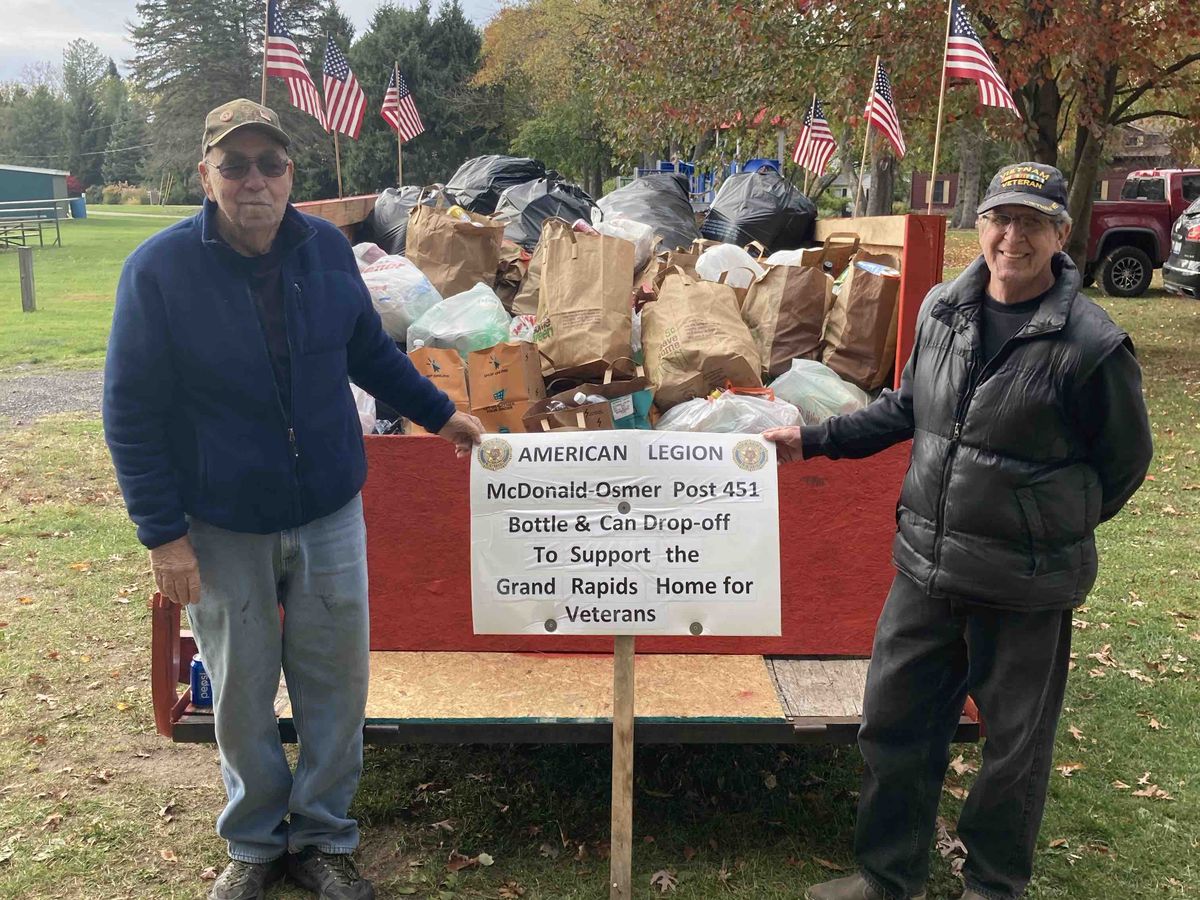 On October 10th, I met a local Grand Rapids Veteran by the name of Tom. He was at the baseball fields in Ada with a red trailer and American flags all over it. Tom was collecting cans on behalf of the Grand Rapids Home for Veterans.