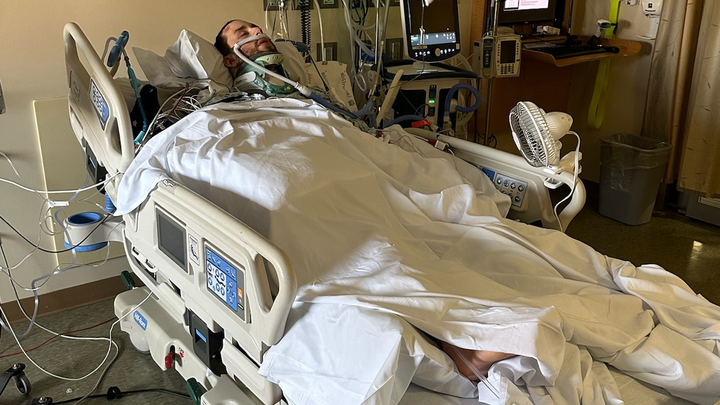 He is on a vent with a trach and paralyzed from the chest down. He will undergo extensive rehabilitation with high hopes of gaining function and walking again. His injuries were so severe his heart rate, blood pressure, and oxygen levels rise and fall dramatically to dangerous levels. We are seeing positive signs, but it will be a very long road to recovery.