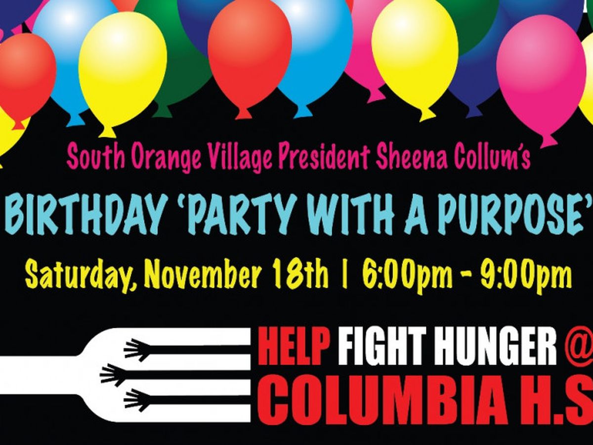 Join us for South Orange Village President Sheena Collum's Birthday 'Party for a Purpose" which will take place on Saturday, November 18th from 6pm-9pm at the home of John & Patty Brown-Christenson, 48 Crest Drive, South Orange.