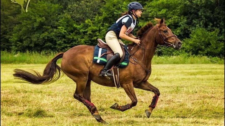 Cider is a 20 year old home bred, well loved, athletic chestnut gelding with tons of personality. Cider taught me the ins & outs of eventing - I went from never having a jump lesson to competing at novice level and schooling training level all in one year. (Thanks to his incredible human-mom Melissa for giving me those opportunities.) I’ve competed in hunter paces, competitive trail, and eventing on this dude. He has brought multiple people along in the horse world - whether his little legs be soaring over fences that are taller than he can see over, or his athleticism helping him float through a dressage test, this dude steps up to the plate and gives it his all. He also successfully competed at Prelim level in Area 1 with our good friend, Kate.