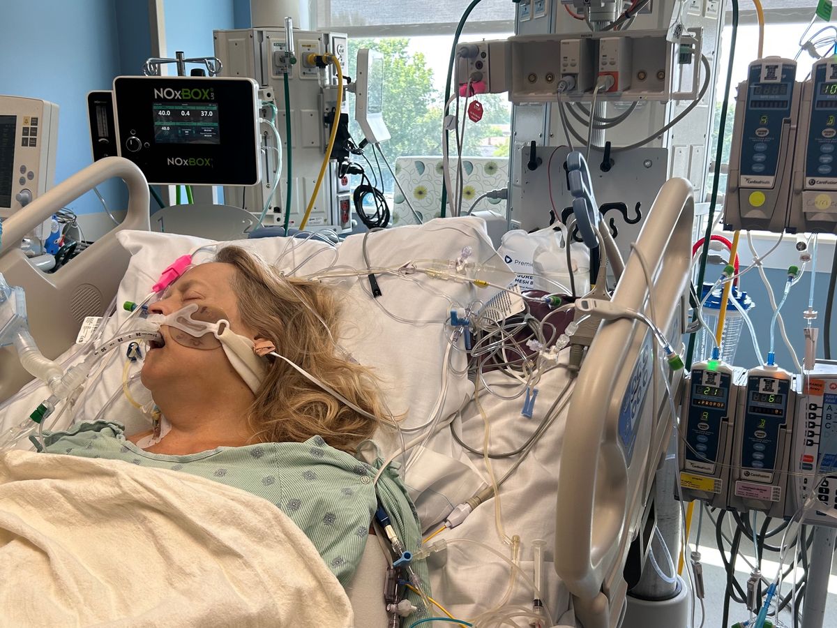 It was determined at this point that during the time Cindy was on vacation she was experiencing Afib and unaware of this happening and for how long, there was extensive damage done to her heart causing it to only function for her at 15%!! They explained to us at Edwards that it was crucial for Cindy to be put on a form of life support called ECMO, and they did not offer it there & she would need to be transferred to Christ hospital in Oak Lawn. The hope was to airlift her, but unfortunately she was too critical, and they transported her by ambulance where during that time her heart function had dropped to 12%!!