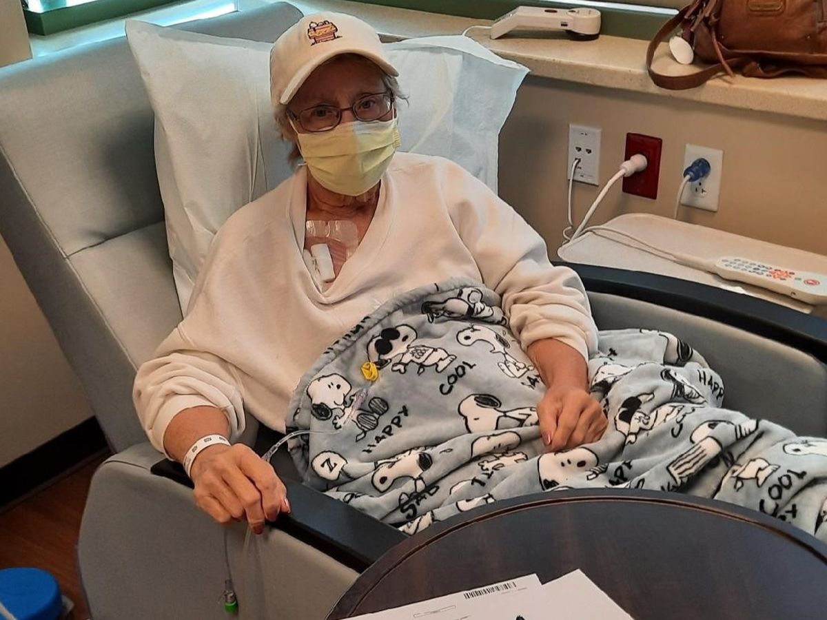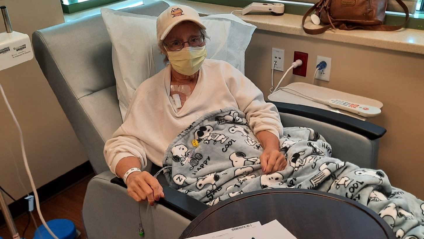 Cindy right now is at a break from chemo (over 12 treatments) -- waiting to start a new drug that has a $3,500 monthly co-pay up front. During this time, until she can get the co-pay, she will continue to receive infusions of Keytruda, magnesium, and hydration.
