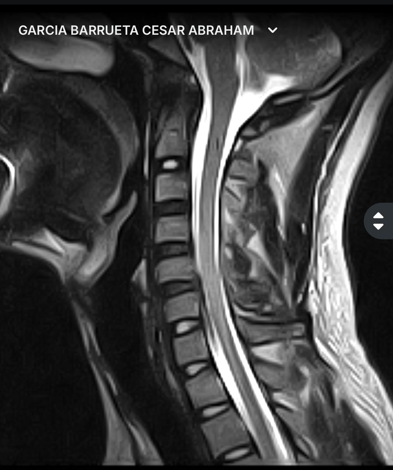 El dolor en el hombro no se calmo, el entumecimiento sigue actualmente en mi brazo izquierdo hacia el dedo pulgar, por lo que me realice una RM donde un neurólogo clínico y el neurocirujano especialista en columna, me diagnosticaron una protrusion discal en C6 con migración hacia abajo, que comprime el cordón medular, el agujero de conjunción derecho estrecho en C5 C5 lo que significa una subluxación facetaria, afortunadamente no pasó a mayores y sigo con movilidad en todos los miembros, pero tengo problemas de sensibilidad en el brazo izquierdo. Por eso requiero de esta cirugía de extirpación del disco intervertebral con estabilización espinal para corregir la subluxación.
