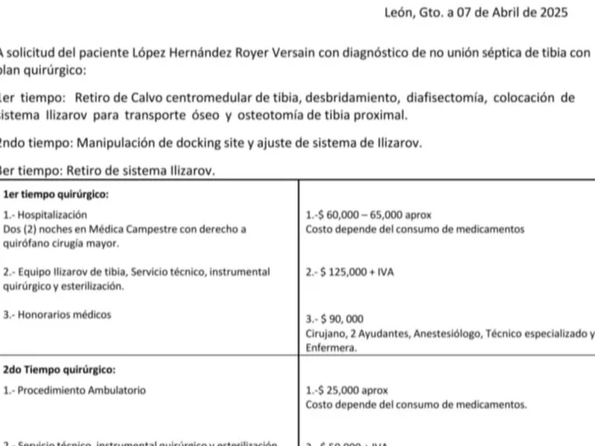 HOLA MI NOMBRE ES ROYER VERSAIN LOPEZ HERNANDEZ RADICO EN LA CIUDAD DE PACHUCA DE SOTO, ESTADO DE HIDALGO, PERMÍTEME COMPARTIR MI EXPERIENCIA TE LO SUPLICO. HACE 5 AÑOS 2020 (RECIEN ACABABA DE CONCLUIR MI UNIVERSIDAD 2019) ME ACCIDENTE EN MOTOCICLETA EN TRAYECTO HACIA MI TRABAJO SAN LUIS POTOSI, VIAJABA CADA 15 DIAS POR MOTIVOS DE MI DESCANSO, DESGRACIADAMENTE EL 25 DE MAYO DE 2020 UN TRAILER PASO SOBRE MI Y ME FRACTURO AMBAS PIERNAS, LA PIERNA IZQUIERDA DESAFORTUNADAMENTE FUE FRACTURA EXPUESTA (SE ME SALIO EL HUESO), DESAFORTUNADAMENTE NO RECUERDO LOS MINIMOS DETALLES YA QUE PERDI LA CONCIENCIA., ESTUVE EN TERAPIA INTENSIVA 15 DIAS Y EN TOTAL 5 MESES EN EL HOSPITAL “MAGDALENA DE LAS SALINAS CDMX, GRACIAS A DIOS DESPERTE, SIN EMBARGO DESDE ENTONCES HASTA LA FECHA HE PASADO POR 15 CIRUGÍAS PERO LAMENTABLEMENTE NO LOGRO LA AUTONOMIA ABSOLUTA (MOVILIDAD INDEPENDIENTE, DESDE 2020 HASTA LA FECHA HE ANDADO EN SILLA DE RUEDAS, MULETAS, BASTON), EN LAS OPERACIONES ME HAN HECHO LAVADOS QUIRURJICOS, COLOCACION DE FIJADORES EXTERNOS, ME HAN COLOCADO PLACAS, CLAVOS Y TORNILLOS, Y CON TODO ESTO EL PROBLEMA PRINCIPAL Y DESAFORTUNADO ES QUE CONTRAJE BACTERIA STAPHYLOCOCCUS (ESA BACTERIA SEGUN SE ERRADICO EN 2020 Y YA SOLO SEGUN ERA Y SE BUSCABA LA CONCOLIDACION TOTAL DEL HUESO, COMO NO FUE ASI, PRODUCTO DE LA BACTERIA., EN 2024 ME OPERARON 4 OCASIONES MAS HACIENDO LO MISMO, LAVADOS QUIRURJICOS Y COLOCACION DE FIJADORES PERO LAMENTABLEMETE EN CADA LAVADO LOS 4 CM DE HUESO QUE INICIALMENTE SE PERDIO., HASTA LA FECHA DESAFORTUNADAMENTE SON 7 CM TOTALES, PARA ELLO EL IMSS (INSTANCIA DE GOBIERNO QUE ME HA ATENDIDO DESDE EL INICIO HASTA HACE ALGUNOS DIAS) YA ME ESTA REFIRIENDO LO PEOR ES DECIR RETIRO DE EXTREMIDAD (AMPUTACION), ESTO A RAIZ QUE DESDE 22 DE DICIEMBRE DE 2024 (ULTIMA CIRUJIA) EL ESPECIALISTA REFIRIO QUE LA PROXIMA OCASION QUE NOS VIERAMOS LAS HERIDAS DEBERIAN DE ESTAR CERRADAS AL 100%, SIN EMBARGO NO FUE ASI (CONSIDERO QUE FUE MUY POCO EL TIEMPO QUE ME DIO PARA QUE CERRARA, SIN EMBARGO TAMBIEN ATRIBUYO QUE MI PIERNA ESTA CANSADA PUES YA LLEVO 15 CIRUJIAS, COMO NO SE LOGRO EL CIERRE DE LAS HERIDAS, EL DOCTOR (ESPECIALISTA) ME DIO DE ALTA Y REFIRIO QUE EN CUANTO ME DIERA EL VALOR DE QUE ME RETIRARA LA PIERNA REGRESARA CON EL, COSA QUE EVIDENTEMENTE NO HARE YA QUE SI BIEN EXISTE MOVILIDAD Y SENSIBILIDAD EN MI PIERNA. CABE MENCIANAR QUE DESDE MARZO DEL AÑO PASADO HASTA EL DIA DE HOY HE ESTADO SOLO EN CAMA POR INDICACIONES DEL DOCOR, PUES YA CAREZCO DE MAS DE 7 CM DE INEXISTENCIA DE HUESO Y ESO PUDIERA SER COMPLICADO PARA MI PIERNA PUES SE PODRIA ROMPER EN DOS SEGÚN LOS ESPECIALISTAS.