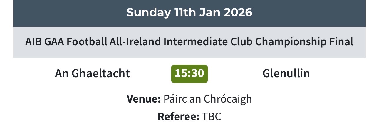 Tá cluiche ceannais na hÉireann bainte amach againn don gcéad uair le dhá bhliain is fiche. Tá tacaíocht airgid ag teastáil go dóite chun costaisí an fheachtais a sheasamh. An féidir linn braith ort? Sprid, Croí, Caid, Teanga.