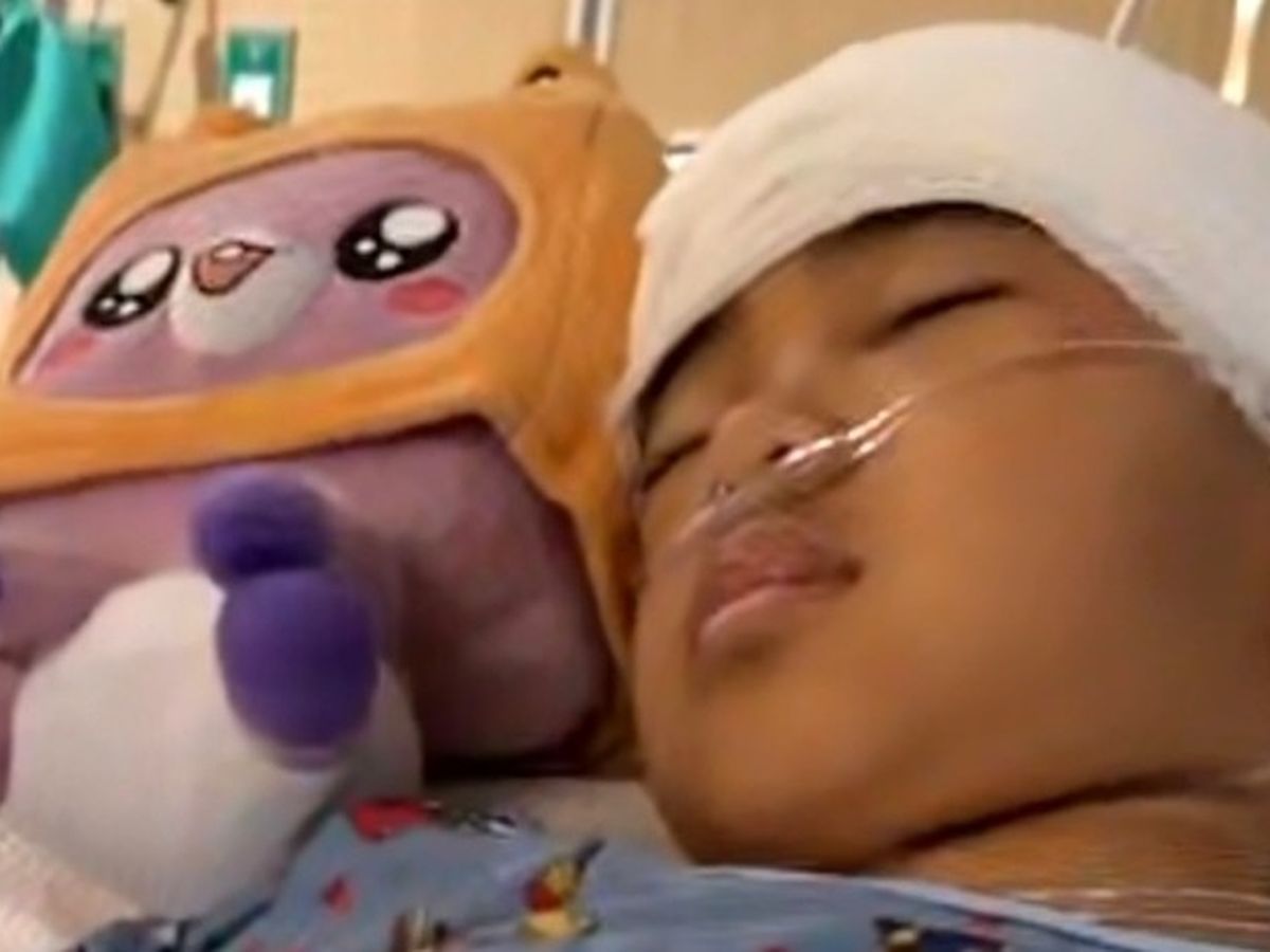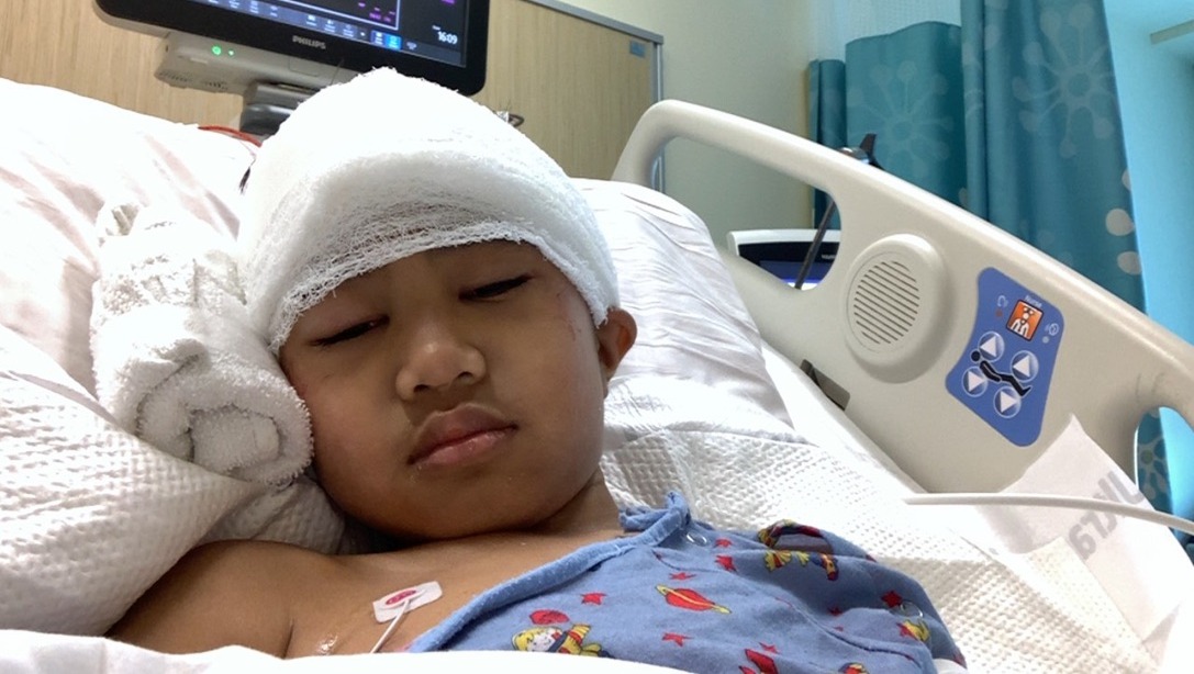 So on Tuesday, April 12, 2022, doctors performed a procedure and inserted a tube to help drain the liquid in Jaysden’s brain. Then, after a day's rest, he underwent a long 11.5-hour surgery on Thursday, April 14, 2022. In this operation, doctors cut an incision from the middle of his head to the back of his neck to access the tumor.