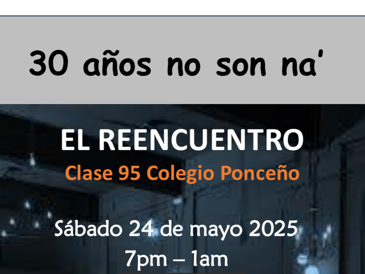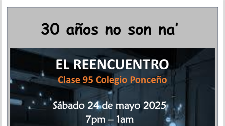 This is our moment!! Let’s make it happen and get together for our Class of 1995 30th anniversary. We are planning an amazing night full of laughs, drinks and music. Appetizers and Buffet are included in the $100 fee (p/p). We count on you to have a great night!!